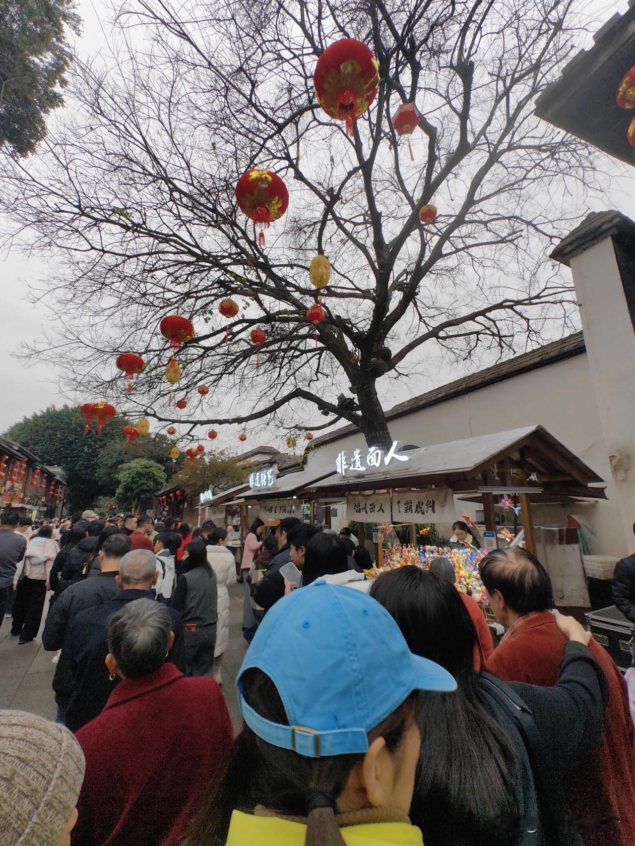 除夕的福州三坊七巷,人多到快要走不动道儿了。一棵桃心树很有意思,枝叶散开成了很完整的心形,很多人在这里拍照打卡。主巷上的同利肉燕是一大名吃,人多排队,不过效率很高。肉燕是闽菜中极具代表性的传统小吃,有“肉包肉”“小长春”之称,与普通馄饨差异极大,更是福州宴席“无燕不成宴”的核心菜品 。 燕皮用猪后腿精瘦肉去筋膜,木槌千捶成泥,拌入地瓜粉(或菱角粉),擀成薄如蝉翼、色白通透的皮,是肉燕的灵魂;可干制储存。 馅料用猪腿肉剁茸,常加荸荠、虾干、葱白等调味,增脆增鲜;包成头圆尾散、形似飞燕的形状。 没吃过的可以小尝一下。作为北方人,我觉得来一碗西安的酸辣水饺更过瘾。 三坊七巷 福州三巷七坊 福州街街景 三坊福建福州