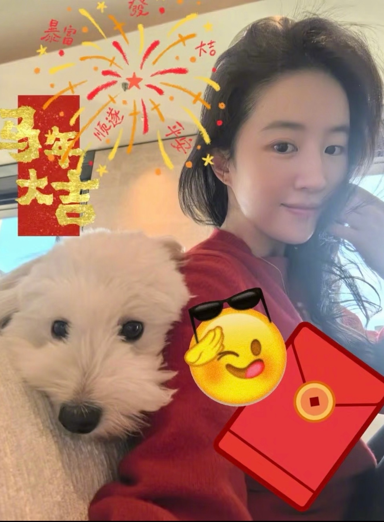 刘亦菲更新新年美照,评论区说哈哈像这只狗哈哈哈哈哈哈哈…