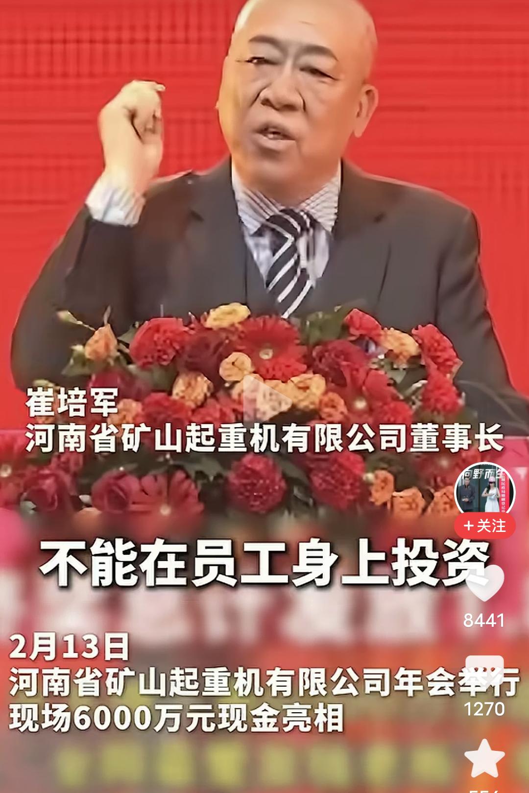 崔培军在公司年会上振聋发聩的讲话:“一个公司,如果说不能在员工身上投资,不知道疼爱员工,不知道关心员工,你这个公司也走不长,走不远,走不久……” 说的太好了!一个企业的老总都懂的道理,它们怎么可能不懂呢?