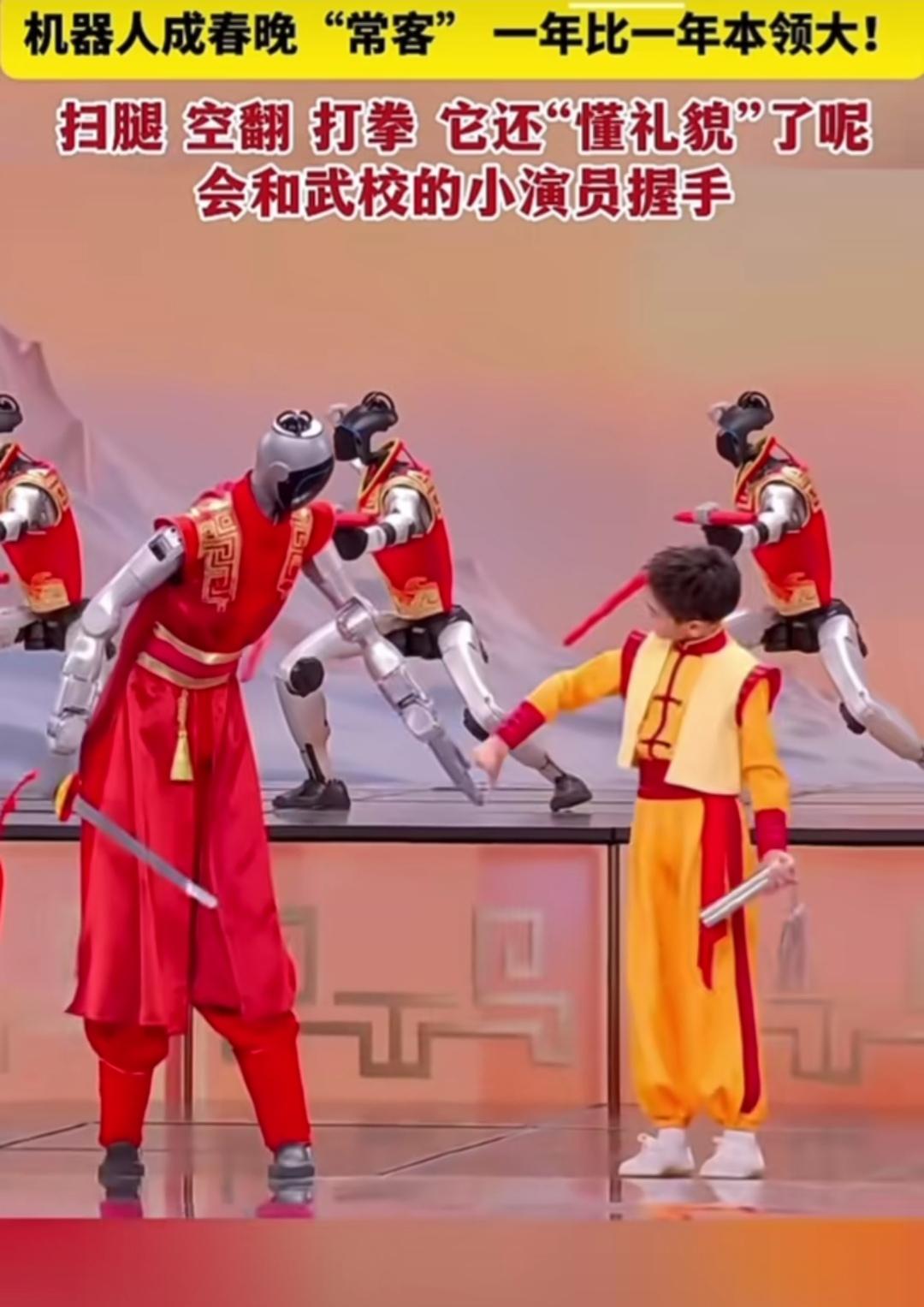 春晚为机器人产业做出了巨大的贡献。 (如图所示)春晚的节目越来越难以引起大众的共鸣,但唯不多的亮点就是机器人在舞台上的表演,从去年呆呆地丢甩手绢,到今年的舞蹈,翻跟头,舞刀弄枪,已经像模像样了,进展神速,这也算春晚为机器人产业做出了巨大的贡献,机器人需要这个舞台去进化。