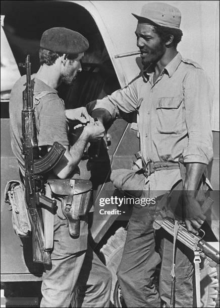 古巴士兵在安哥拉,中间叼雪茄的拿着以色列乌兹冲锋枪
