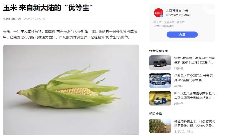 为什么说玉米是“外星植物”?一位60多岁的老人告诉我:90%的人都不知道玉米是“外星植物”,全球玉米年产11亿吨,但在地球上找不到任何玉米的“祖先”? 有位60多岁的老人曾跟我说,90%的人都不知道玉米是“外星植物”,这话听着玄乎,但仔细琢磨会发现,玉米还真有不少让人费解的地方,如今全球玉米年产量都快冲到13亿吨了,咱们吃的玉米汁、烤玉米、爆米花随处可见,可在过去很长一段时间里,科学家都没找到它的“祖先”,这也让它成了农作物里最神秘的存在。 最早把玉米和“外星”挂钩的,是当年发现新大陆的欧洲人,哥伦布的船队抵达美洲时,第一次见到这种作物就惊呆了:纤长的茎秆笔直挺立,宽大的叶片层层叠叠,顶端长着雄花,中部叶腋里却藏着雌花,成熟后结成密密麻麻的金黄色果穗,外面还裹着厚厚的苞叶,这模样和欧洲本土的小麦、大麦完全不一样,难怪有人会觉得它是“外星来的”。 更让人大惑不解的是玉米的生存能力——它根本没法自己在野外繁衍,玉米粒被坚硬的外壳包裹,外面还有苞叶保护,要是没人帮忙播种,成熟后掉在地上也发不了芽。 而且它的雌雄花分开生长,自然授粉的概率极低,不像其他野生植物那样能轻松繁衍后代,考古发现,一万多年前美洲就有玉米了,但在很长一段时间里,科学家翻遍了全球,都没找到和它有亲缘关系的野生植物,这“无祖之子”的特质,更给它添了层神秘色彩。 其实古人早就对玉米的神奇感到好奇了,玛雅文明里就有个奇特的传说,说玛雅人是玉米创造的,玉米才是生命的源头,玛雅人还把玉米奉为神祗,很多文物上都有戴着玉米头饰的神像,这也难怪后人会猜测,古人是不是知道些玉米起源的隐秘线索。 不过这个“外星植物”的谜团,最近几年终于被解开了,华中农业大学和美国加州大学的研究团队联合攻关,在《科学》杂志上发表了重要成果:现代玉米其实有两个“祖先”,都是墨西哥的大刍草亚种,原来玉米最初是在墨西哥西南部低海拔地区被驯化的,后来随着人类活动扩散到中部高海拔地区。 大约6200多年前,它和当地的另一种大刍草偶然杂交,才慢慢适应了高海拔环境,最终形成了我们现在看到的玉米,研究还发现,每份现代玉米里,大概有18%的基因组来自第二种大刍草。 从被质疑是“外星植物”,到找到两个真正的祖先,玉米的起源之谜跨越了一个多世纪才被揭开,如今我们知道,它不是什么外星馈赠,而是人类驯化和自然选择共同作用的结果。 哥伦布发现新大陆后,玉米被带到欧洲,又逐渐传播到全球,凭借着高产、适应性强的特点,成了世界三大粮食作物之一,不仅养活了无数人,还被用作饲料、工业原料,渗透到我们生活的方方面面。 看似平凡的玉米,背后藏着这么复杂的起源历程,也让我明白,很多看似神秘的现象,其实都是科学尚未触及的领域,随着研究的深入,更多谜团都会被解开,而这种探索未知的过程,本身就是件很有意义的事,平时吃玉米的时候,想想它跨越千年的传播和进化史,还真有种不一样的感觉。
