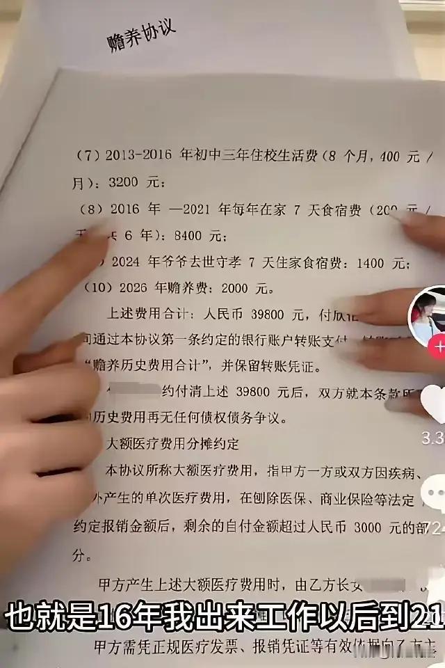 上海,24岁女孩从小就是留守儿童,初中毕业就去上海打工,年前因拒绝替弟弟出20万彩礼,除夕前一天收到父母的起诉书。女孩说,父母给她算的账,从小到大她一共花了他们39800元,包括超生罚款和过年回家每天200块钱的伙食费,以及爷爷离世回家守孝7天,每天200元的伙食费。 家庭的温暖似乎变得越来越稀缺。尤其是在大城市里,像上海这样繁忙的都市,每一个年轻人都在为梦想拼搏,为生活奔波。而在这个故事中,一个24岁的女孩,用自己的经历,折射出许多家庭背后隐藏的温情与矛盾,也让我们深思:家庭的爱,到底是无条件的付出,还是需要彼此的理解和尊重? 这个女孩,从小就是留守儿童,童年的记忆里充满了孤独与等待。她没有父母的陪伴,却用坚强和努力,走出了属于自己的路。初中毕业后,她选择了离开家乡,来到上海打工,试图用自己的双手改变命运。她的生活不易,但她始终坚持着,因为她知道,只有努力,才能让自己变得更好。 春节的脚步临近,本应是阖家团聚、温馨祥和的时刻,却因为一份“彩礼”引发了一场家庭风暴。女孩拒绝为弟弟出20万彩礼的决定,成为了家庭矛盾的导火索。父母的反应,令人震惊、不仅没有理解,反而在除夕前一天,拿出了一份“起诉书”。 起诉书中,父母列出了所谓的“账单”从小到大,女孩为家庭付出了总共39800元。这笔账单包括超生罚款、过年回家的伙食费、爷爷去世时的守孝费用,每一项都像是一道道无形的枷锁,将女孩的情感与尊严紧紧绑在一起。 这份“账单”背后,隐藏的是怎样的家庭关系?又折射出怎样的父母心态?我们不得不问:家庭的爱,究竟应该是无条件的付出,还是需要建立在理解与尊重之上?这场纷争,究竟是谁的错?又是谁在迷失? 许多家庭都曾面临类似的困境。父母对子女的期待,往往夹杂着传统观念和对未来的担忧。而子女的选择,又代表着个人的梦想与自由。两者之间的冲突,既是价值观的碰撞,也是代际之间的沟壑。 更令人心碎的是,这场冲突的核心,似乎变成了“金钱”与“责任”的较量。父母用“账单”来衡量女儿的付出,仿佛家庭的爱可以用数字来衡量。这种方式,虽然体现了他们的“用心良苦”,但也让人质疑:爱,真的可以用金钱和账单来衡量吗? 这不禁让人反思:我们是否也曾在无形中,把家庭关系变成了一场“算账”游戏?我们是否也在不经意间,把爱变成了“责任”和“义务”?当“爱”变得“有价”时,家庭的温暖是否还存在? 面对这场家庭风暴,我们需要的,是更多的理解与沟通。女孩的拒绝,不仅仅是对彩礼的反对,更是对家庭关系的一次呼喊“我需要被理解,我需要被尊重。”父母的起诉,也许是出于担心和焦虑,但如果没有沟通和包容,这样的“账单”只会让彼此更远。 这个故事,告诉我们:家庭的幸福,不在于金钱的多寡,而在于彼此的理解和爱。我们每个人都在用自己的方式爱着家人,也都在用自己的方式寻找幸福。真正的答案,是学会放下“算账”的心态,用心去倾听,用爱去包容。 家庭的爱,究竟应该是什么样子?如何让爱变得更纯粹、更温暖?答案就在我们每一个人的心中。