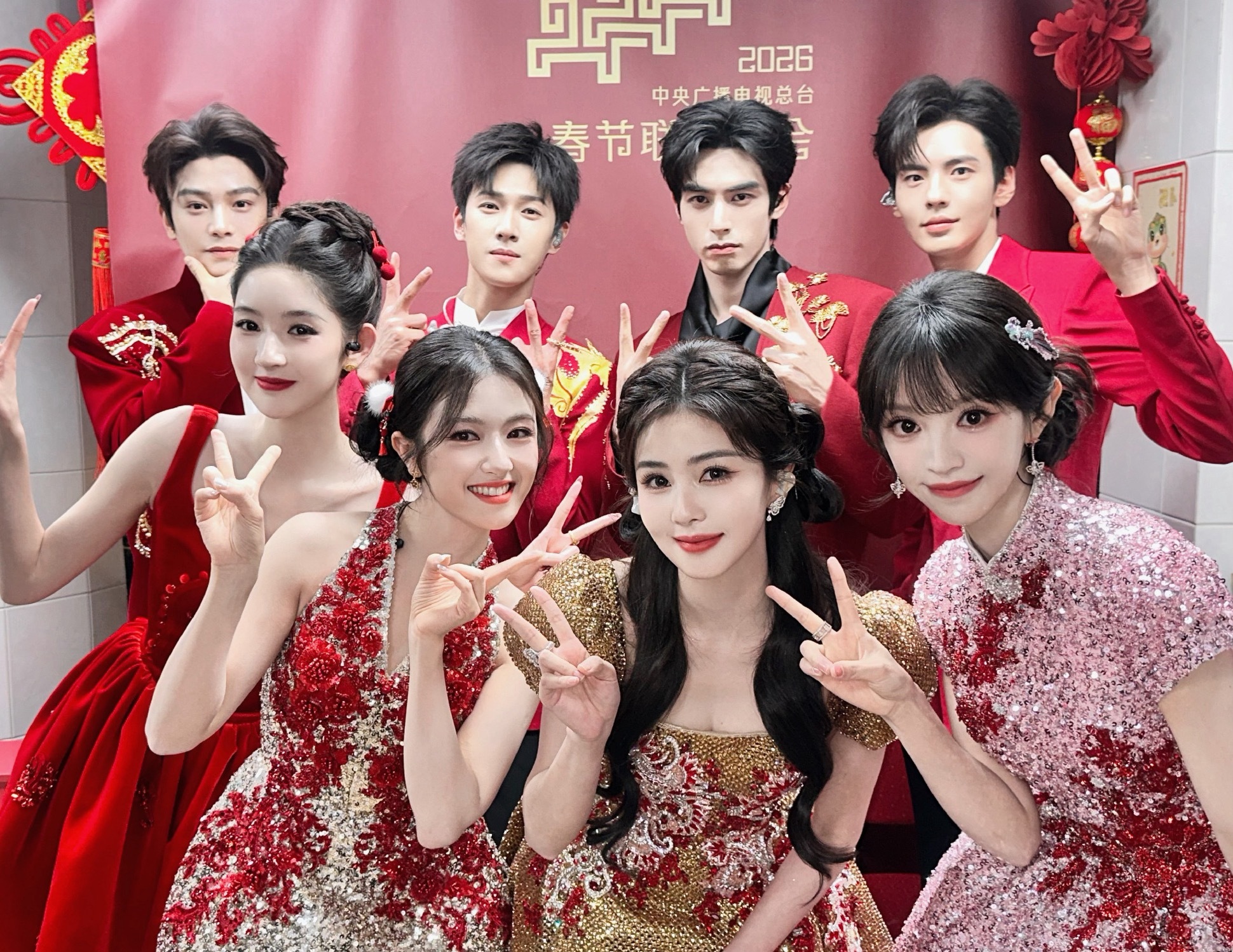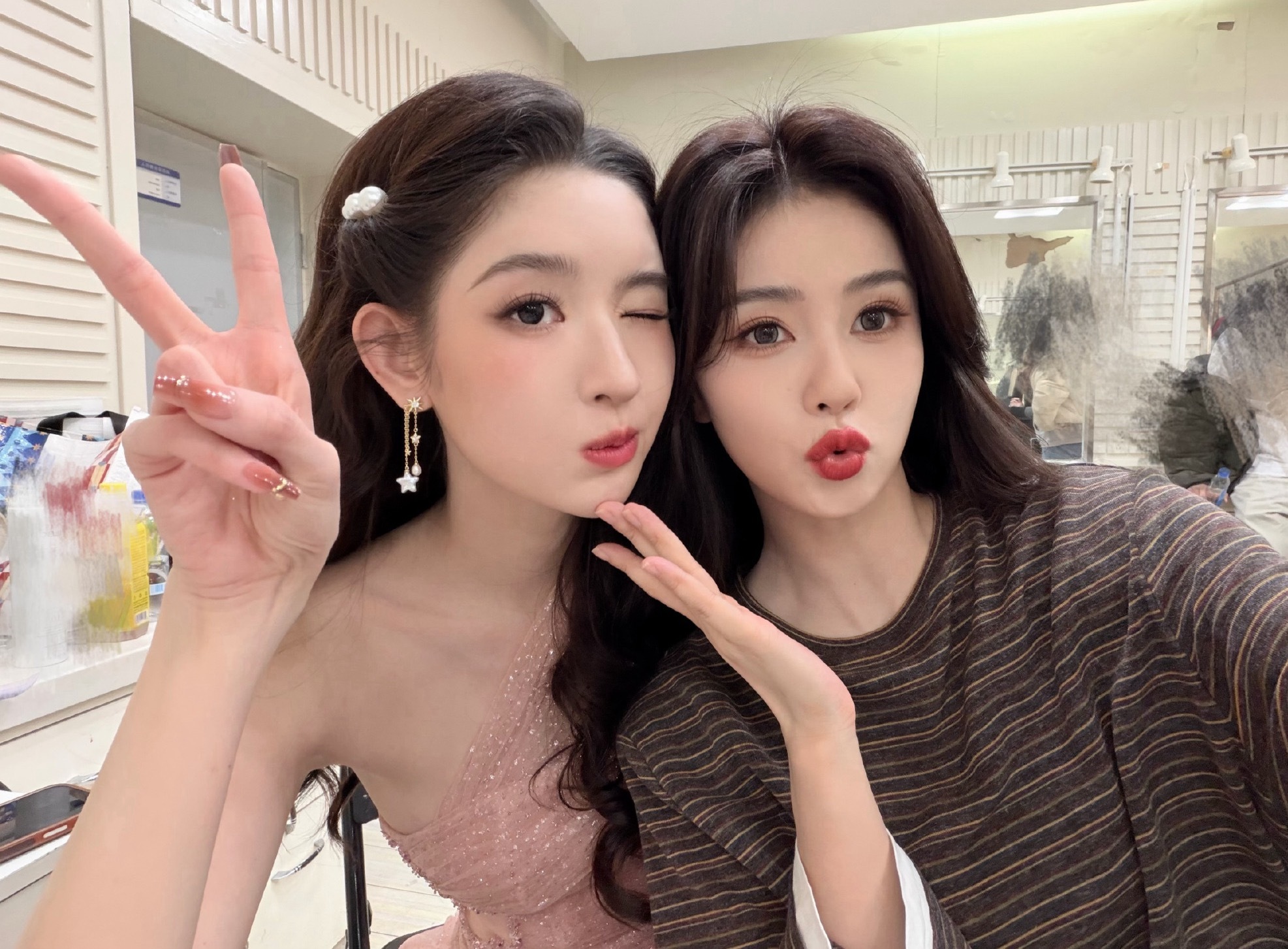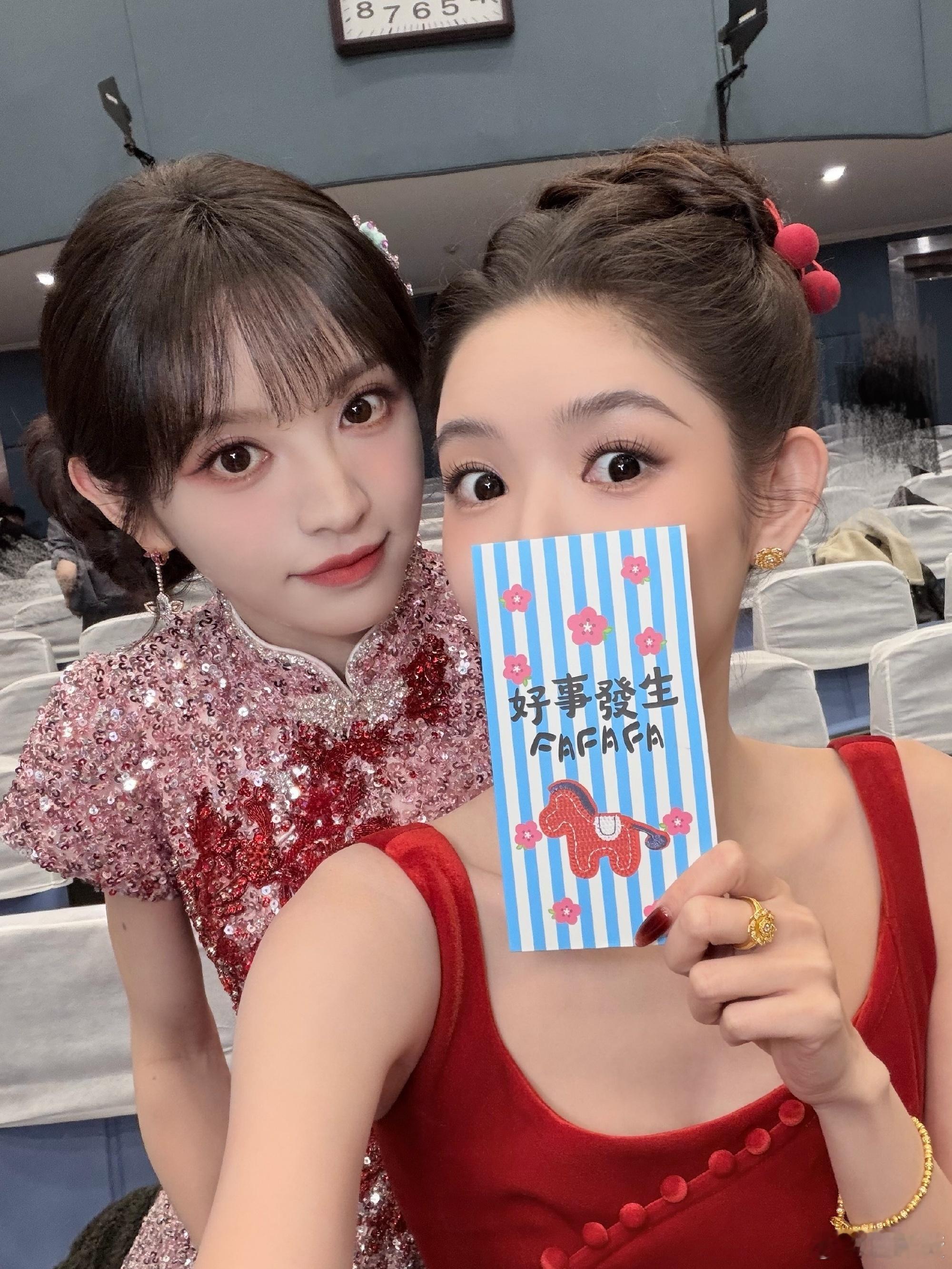 好多人啊,田曦薇和王玉雯发的春晚后台自拍