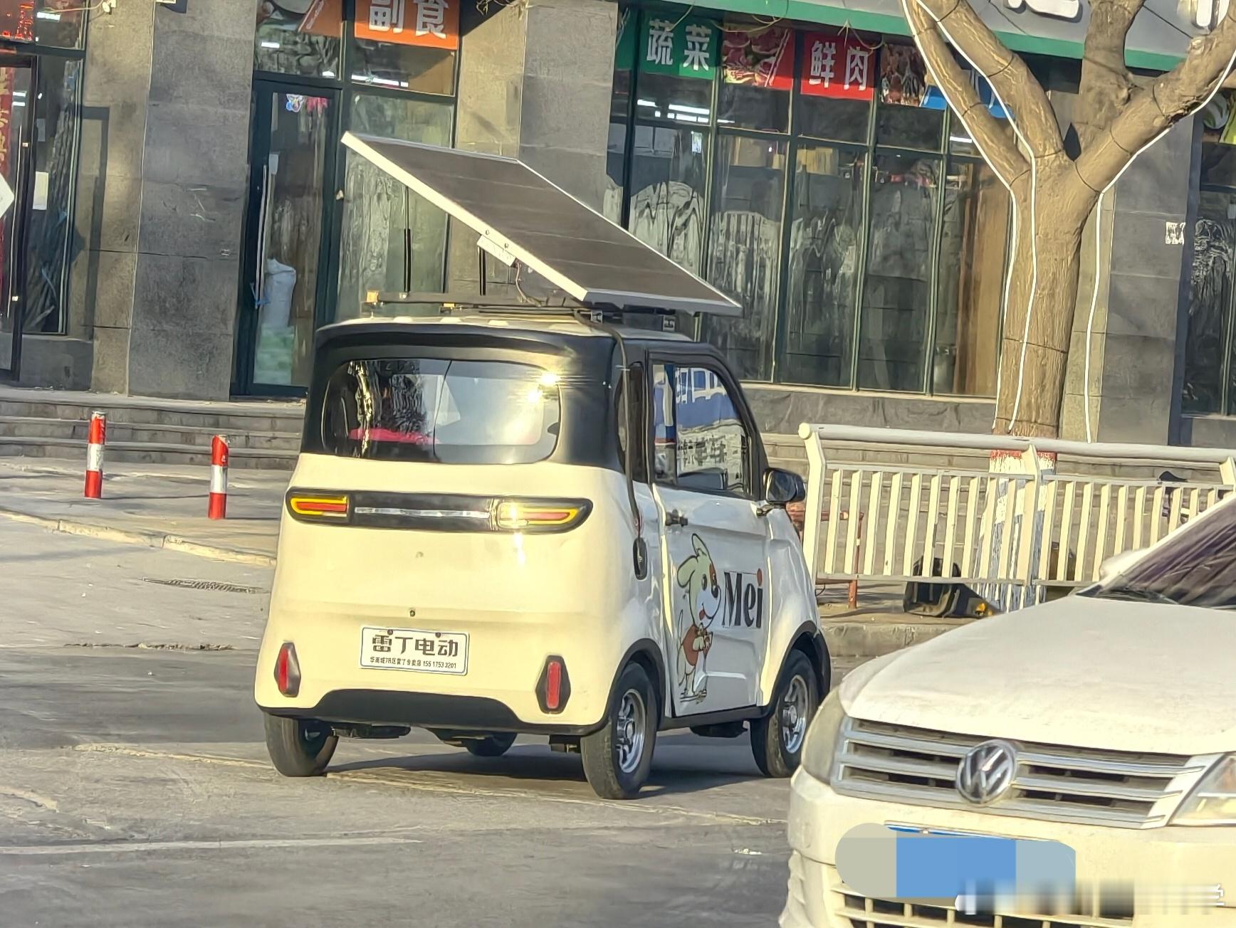 路上遇到一辆老头乐,头上居然顶了一个太阳能板!我是真的好奇,它发的电够自己用吗?