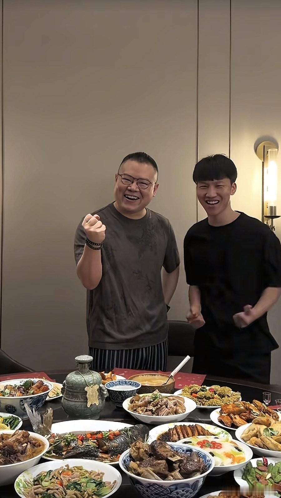 岳云鹏录了视频,是和徒弟刘筱亭一起的,原来徒弟们也跑到岳云鹏的家里吃饭了,想象一下那种场面是非常热闹的。