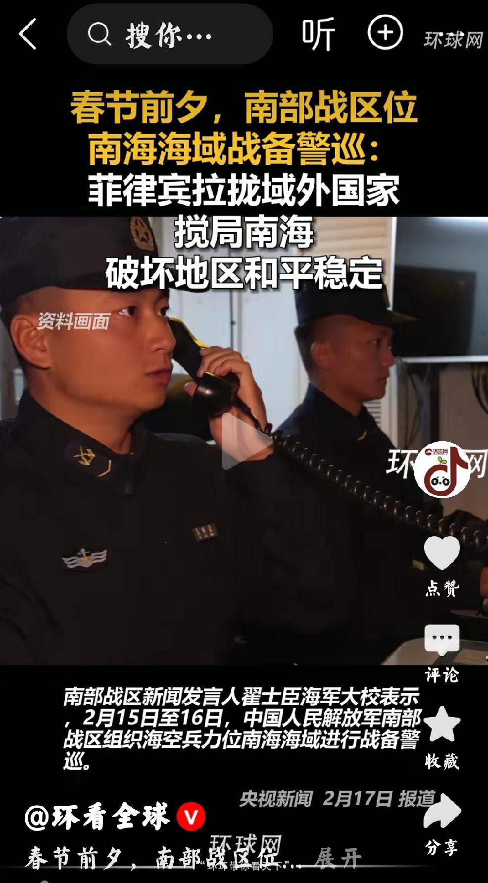2月17日,路透社报道:“菲律宾外交部表示,对于中国驻马尼拉大使馆所表达的有关两国之间持续不断的外交争端可能导致数百万个工作岗位流失的言论,菲律宾表示强烈反对。菲律宾外交部还指出,此类言论可能被视为具有胁迫性质。” 个人认为:个人认为,中国此番举动,能起到两个作用。 一,杀鸡儆猴,杀一儆百,因为好话难劝,该死的鬼,所以只好出此下策。 二,敲山震虎,中国有句俗话:“打狗还得看主人”。所以打菲弱狗,就是给真美爸看的。 菲律宾可以掏出数亿美元,参加19日在华盛顿举行的特朗普和平委员会,祈求美国的口头支持,同时还会获赠一本特朗普写的《交易的艺术》一书,不会给香水,因为菲律宾不懂。
