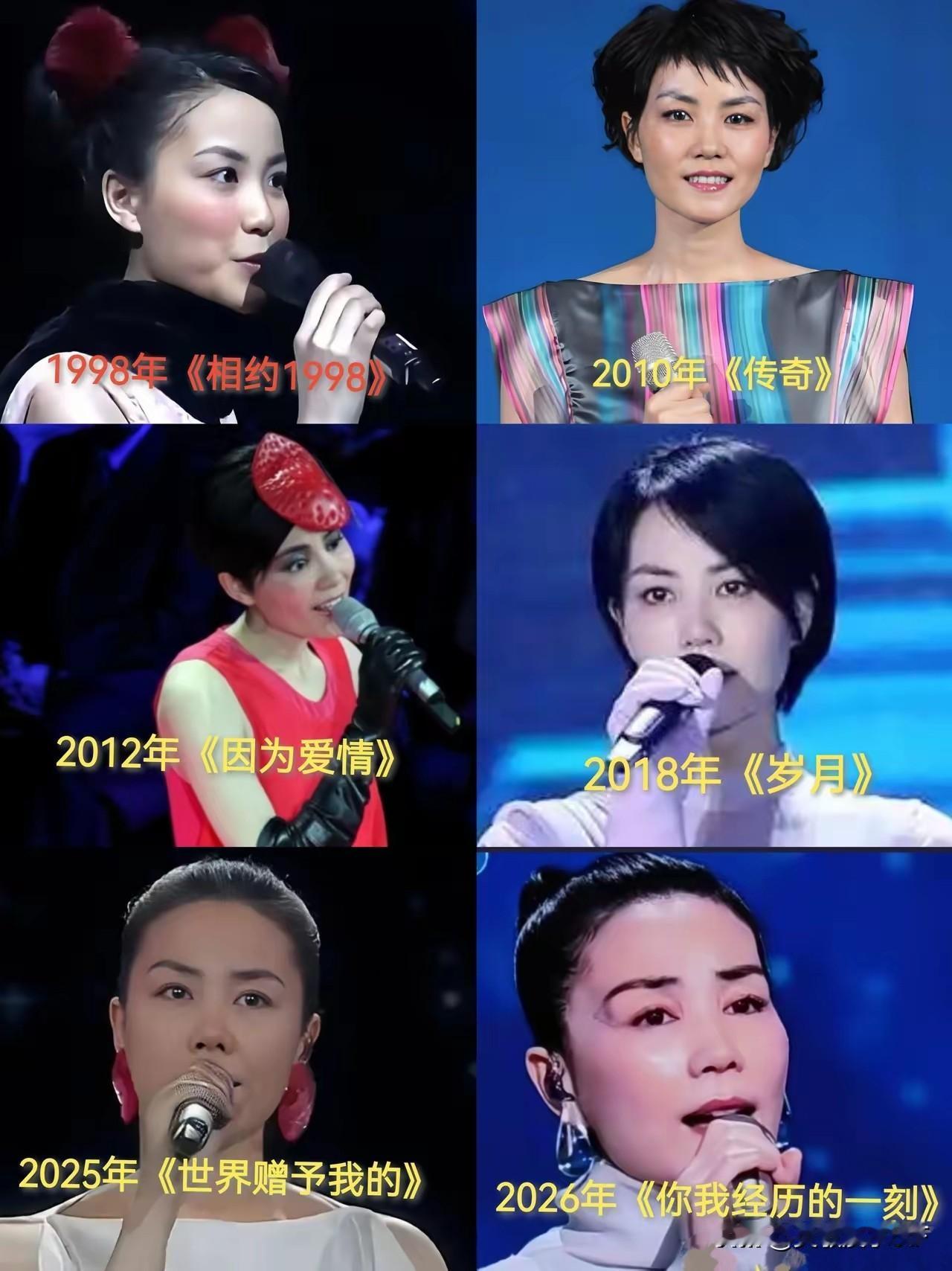 昨晚静静地守在电视机前,就是为了听王菲唱这首《你我经历的一刻》。今年是她第六次登春晚,这份与春晚喧嚣氛围的“格格不入”,恰恰是她最珍贵的坚持。春晚主打的是喜庆,而她从未迎合,每一次登台都是一场与自我、与岁月的深情对话。 回顾这六段时光,“忠于内心”是她不变的主线: 1. 1998年《相约一九九八》:初为人母的她与那英合唱,哪吒头造型惊艳时代,唱出了世纪之交的期盼。 2.2010年《传奇》:她隐退多年后第一次正式回归。穿一袭彩色条纹裙,搭配桃红色丝袜,造型大胆前卫。站在台上安静地唱,直接把李健的这首老歌唱成了全民爆款。 3. 2012年《因为爱情》:与陈奕迅合唱虽有争议,但她以标志性慵懒嗓音,真切唱出了爱情的温柔与遗憾。 4. 2018年《岁月》:时隔20年再跟那英同台合唱,她唱出了看淡一切的洒脱,更唱出了走过大风大浪后的坦然。 5. 2025年《世界赠予我的》:唱的是与生活和解,她那一滴泪看哭了无数人,成了那年春晚最火的治愈名场面。 6. 2026年《你我经历的一刻》:一身白裙配水滴耳环,身后是浩瀚的银河特效,王菲用历经岁月的温柔唱腔,诉说着珍惜当下的治愈力量。 这首歌难度极大,却是她一眼相中的作品。她坚持一字不改,尊重原创,这份对艺术的敬畏,正是“忠于内心”的最好体现 。在万众瞩目的春晚舞台上,她始终守着自己的节奏,用歌声构建一个只属于她的世界。不迎合,只做自己,这就是“天后”的底气! ~以上仅代表个人的观点~