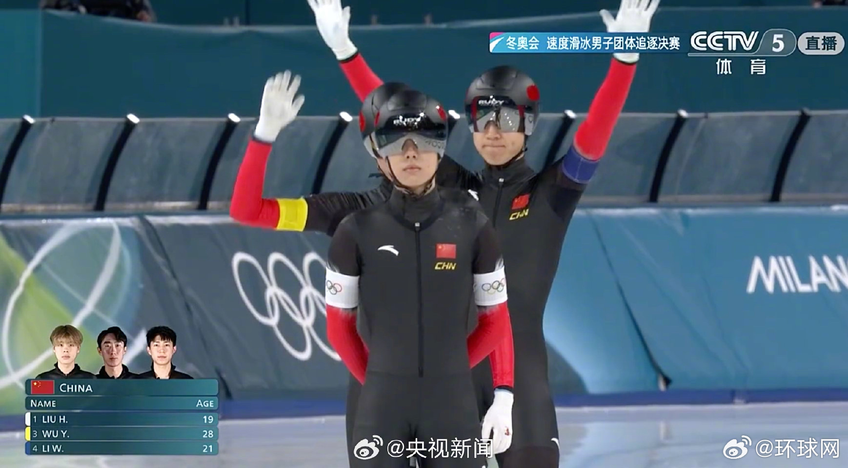 【祝贺!#中国男团速滑追逐摘铜#】#中国队又添一枚奖牌# 米兰-科尔蒂纳冬奥会速度滑冰男子团体追逐铜牌赛,中国队战胜荷兰队,获得铜牌。点赞!(央视)