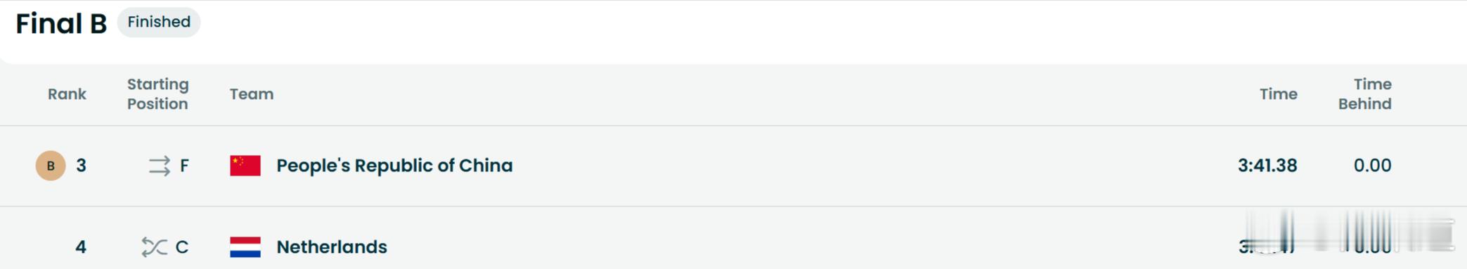 冬奥会速度滑冰速度滑冰男子团体追逐赛决赛在米兰速度滑冰馆结束争夺。在B组决赛中,中国队以3:41.38,领先荷兰队0.09秒,夺得一枚宝贵铜牌,赢得中国体育代表团在本届赛事的第6枚奖牌(3银3铜),并创造了中国速滑队在这个项目冬奥会的最好成绩。刘瀚彬、宁忠岩、吴宇和李文淏好样的!意大利夺冠,美国队摘银。 速滑追逐中国男团战胜荷兰