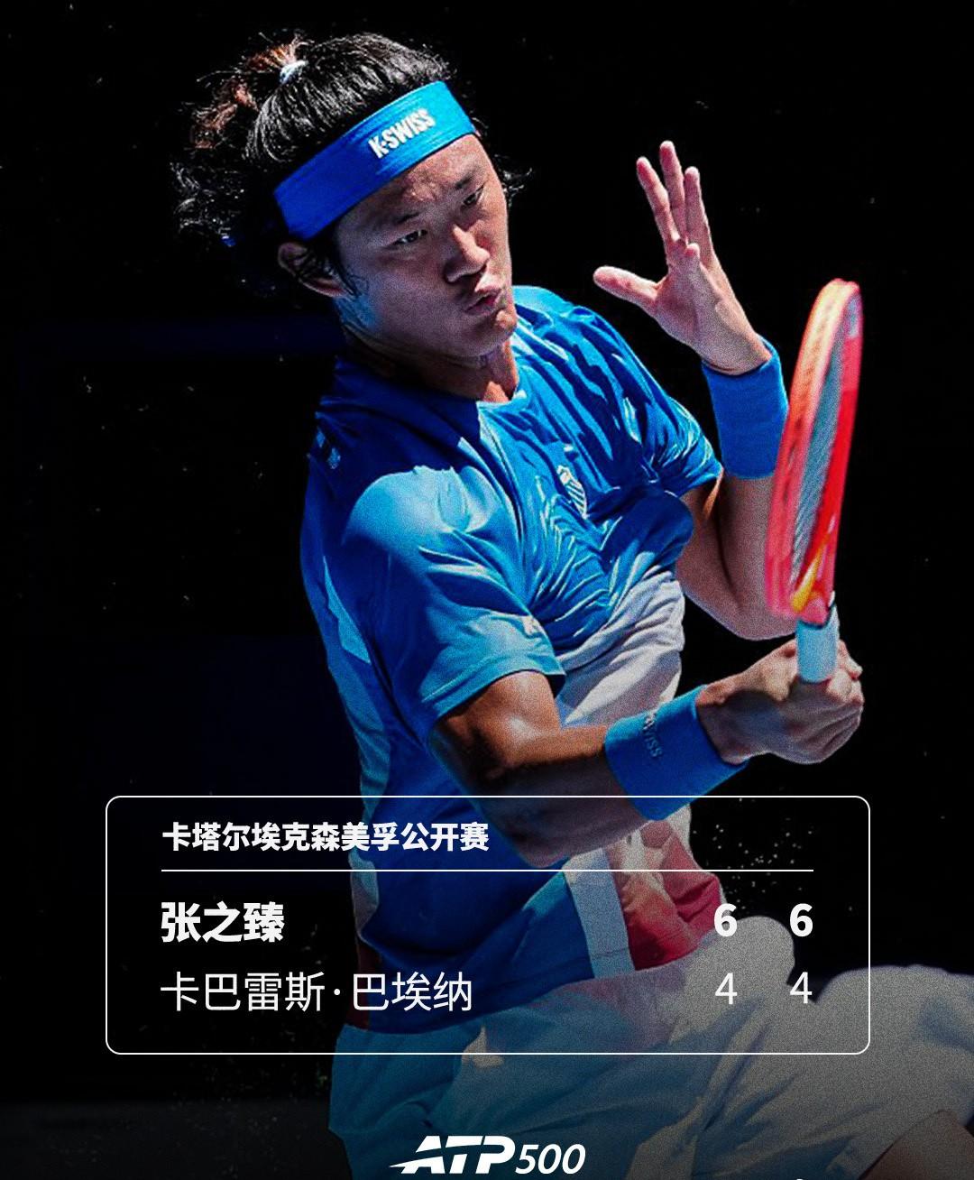 ATP500多哈赛男单首轮,张之臻6-4/6-4巴埃纳[Q]。从戴维斯杯到布里斯班到多哈,张之臻取得7连胜! 收获50分,41435美元,排名上升58位到了261。下一轮对阵门希克。 级别高的比赛就是不一样,上一站挑战赛足足打了5场才夺冠,积分仅拿到75分。