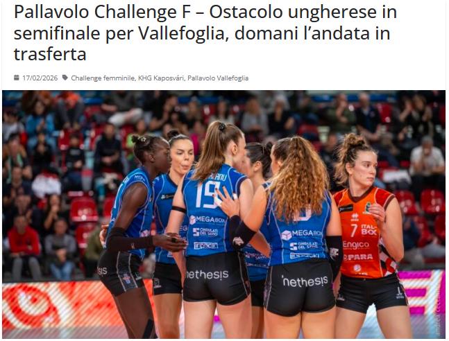 朱婷、庄宇珊之意甲:欧陆三级赛事欧挑杯开打:意甲瓦列福利亚队明天进行欧挑杯客场半决赛首回合,前方障碍匈牙利卡波斯瓦尔 RNC 欧洲赛事将在 02 月 18 日星期三下午 6 点,在卡波什瓦尔的卡波什瓦里体育馆举行欧挑杯半决赛首回合,代表意大利出战的瓦莱福利亚迎战匈牙利卡波斯瓦尔 RNC。复赛将于 02 月 25 日星期三晚上 8 点在佩萨罗的 Megabox 球馆举行。决赛定于 03 月 11 日星期三和 18 日星期三举行,设有主客场比赛。另一场半决赛中,两支希腊球队相遇:雅典帕纳辛奈科斯和帕尼奥尼尼 GSS。 卡波斯瓦尔 RNC 在 32 强中以 3-0 双杀挪威球队 Oksyl Myre。在 16 强 赛中,她们连续两次战胜捷克布拉格 PVK Olymp Praha(3-0 和 3-1),而在四分之一决赛中,又以相同比分双杀斯洛文尼亚 Nova Gorica OK Gen-i Volley。 至于"绿老虎"(瓦莱福利亚),她们在首轮以金局淘汰了雅典 AEK,随后轻松战胜了匈牙利的 Nyíregyháza Fatum 以及西班牙的 CV JAV Olímpico。 来源:电子排球杂志