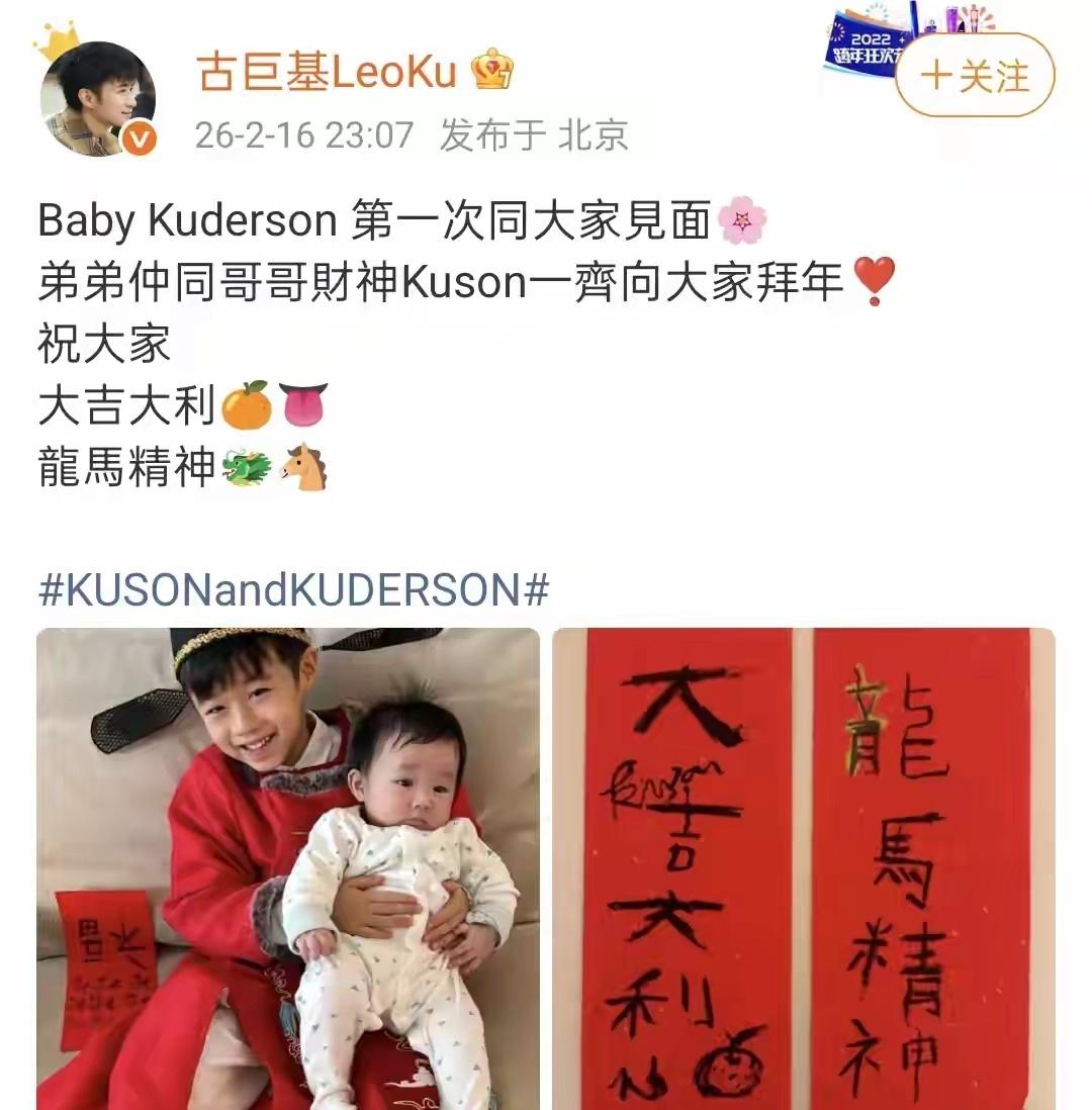 古巨基除夕夜首晒二胎正脸,二宝高颜值像爸爸!大儿子写对联好赞