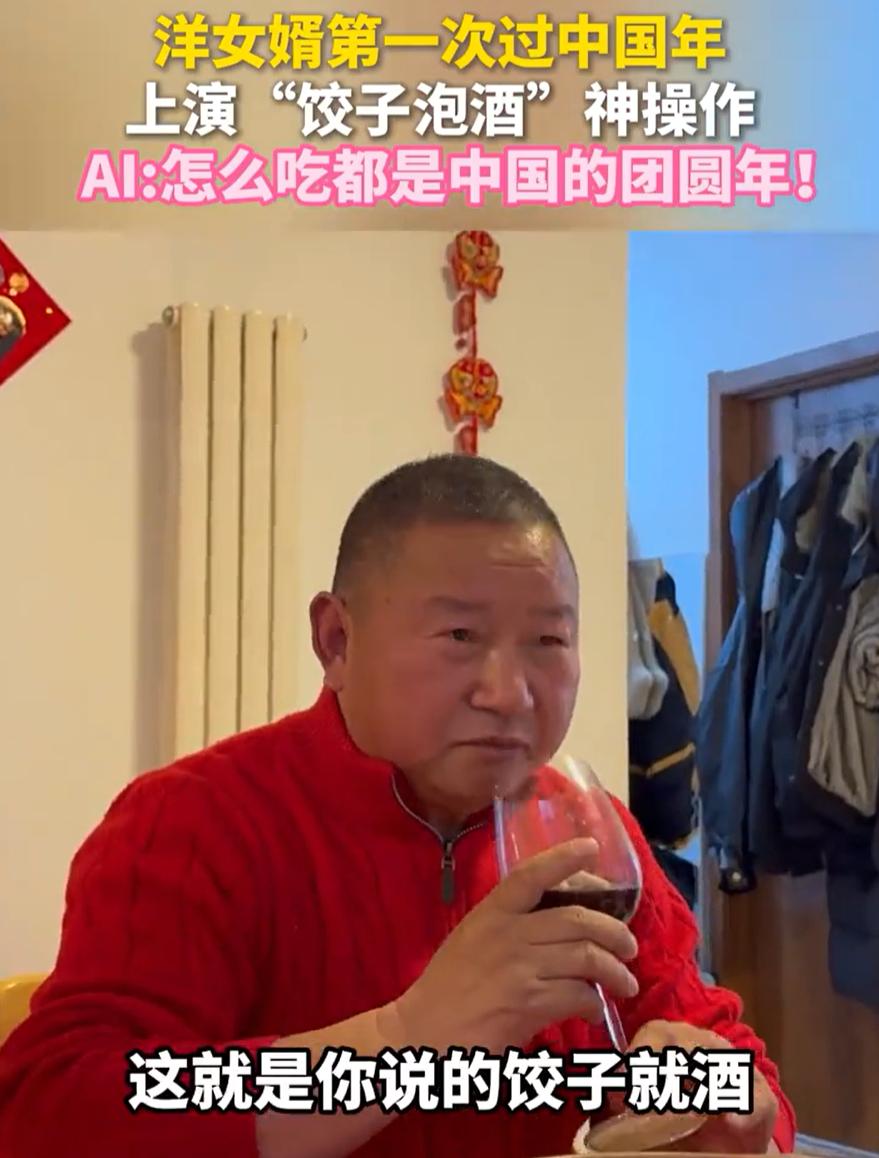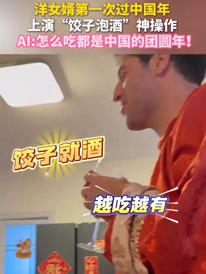 笑不活了!河南洛阳,一位外国女婿第一次在中国过春节,不料,在年夜饭上女婿想要表现一下,突然夹起一个扔到老丈人的酒里面,把一家人都给弄懵了,结果洋女婿一句:饺子就酒,越吃越有。把一家人都给逗笑了 因为是第一次过中国年,所以这位洋女婿提前做足了功课。又是查习俗又是背祝词,就等着在年夜饭上露一手。结果这一手露得,全家都懵了 年夜饭桌上,这位洋女婿瞅准时机,夹起一个饺子,咣当一下扔进了老丈人的红酒杯里。老丈人端着酒杯,一脸懵:这是弄啥嘞? 洋女婿立马站起来,端着酒杯就来了一句:爸!饺子就酒,越吃越有。祝你马年行大运,干了!说完,自己先干为敬 旁边女朋友笑得直不起腰,赶紧解释:饺子就酒不是让你把饺子泡酒里啊 这事传出来,网友们笑疯了。有人说得实在:这洋女婿是个人才,把顺口溜理解成了实操指南。还有人说:至少人家是真想表现,比那些坐着等吃强多了 说实在的,这事看着好笑,但细想想挺暖心。一个外国人,为了融入中国的家庭,提前做功课,背俗语,想在年夜饭上表现一下。虽然理解出了偏差,但这份心意谁都看得见 咱们过年常说年味淡了,可年味是什么?不就是一家人坐在一起,有说有笑,热热闹闹。这个洋女婿一个饺子扔进红酒,把全家逗得前仰后合,这不就是最好的年味吗? 再说了,饺子泡红酒,说不定还真是个新吃法。现在不是流行红酒配牛排吗,配饺子也不是不行。关键是这个洋女婿敢于尝试,敢于表达,这种性格在哪都招人喜欢