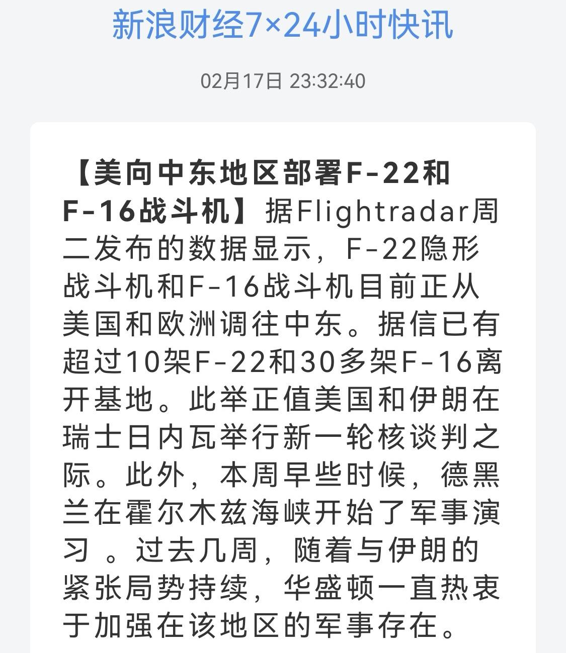 忌惮和恐惧 美方和伊朗不同心理 美伊核博弈 美国伊朗核谈判 美伊核谈判如期进行,而双方场外较量已无数轮,并且不断升级。 新华社报道,美伊17日将在瑞士日内瓦举行新一轮谈判。特朗普政府此前为谈判设定一个月期限,并向中东派遣第二艘航母。据Flightradar周二发布的数据显示,F-22隐形战斗机和F-16战斗机目前正从美国和欧洲调往中东。据信已有超过10架F-22和30多架F-16离开基地。 新华社转发伊朗光明通讯社17日报道,本轮伊朗与美国技术层面间接谈判已开始。与此同时,伊朗武装力量正在霍尔木兹海峡与阿曼海举行军事演习。革命卫队海军司令称,如果需要封锁霍尔木兹海峡,这支部队将在最短时间内完成行动。伊朗在波斯湾试射了大型导弹。伊朗最高领袖哈梅内伊表示,伊朗导弹的型号和射程与美国无关。 行动归行动,意图可是不一。美方只是忌惮伊朗的反抗,而伊朗确实是恐惧美方的强大。美方告诉伊朗的是我有两艘航母,无数的战机,已经调配到位,只看你伊朗同不同意达成美方需要的协议。伊朗回应的是我可以封锁霍尔木兹海峡,对世界的能源运输造成极大的影响;还有弹道导弹,去年已经告诉你可以打到乙方,而且有可能打到美国,但不告诉你是不是真的。 但美国怕吗?12日战争伊朗的表现,美国满意,你没有表现出让美国害怕的东西。但即使躲过美国这一关,那乙方呢?他也可能不顾美国的反对,自行打击。军事疑云不散,中东永远都是焦点。 (图片源自网络侵权告知删除)