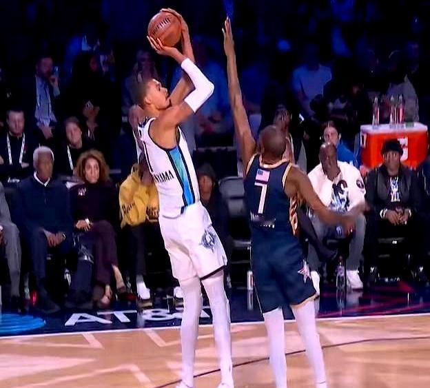 他一个人,把一场表演赛,硬生生打成了季后赛抢七。 开场哨响,他先是一个暴扣,紧接着就是一个三分。防守端,他送出钉板大帽,把对手的快攻直接扇飞。连队友都被他感染,全场跟着他玩命跑。 赛前他就放话,要让全明星赛回归竞争。结果两场循环赛,世界队一场输2分,一场输3分,他最后那个绝平三分没进,气得直摇头。两战全败,第一个被淘汰。 以后别再说全明星没意思了,那是因为文班亚马还没来。