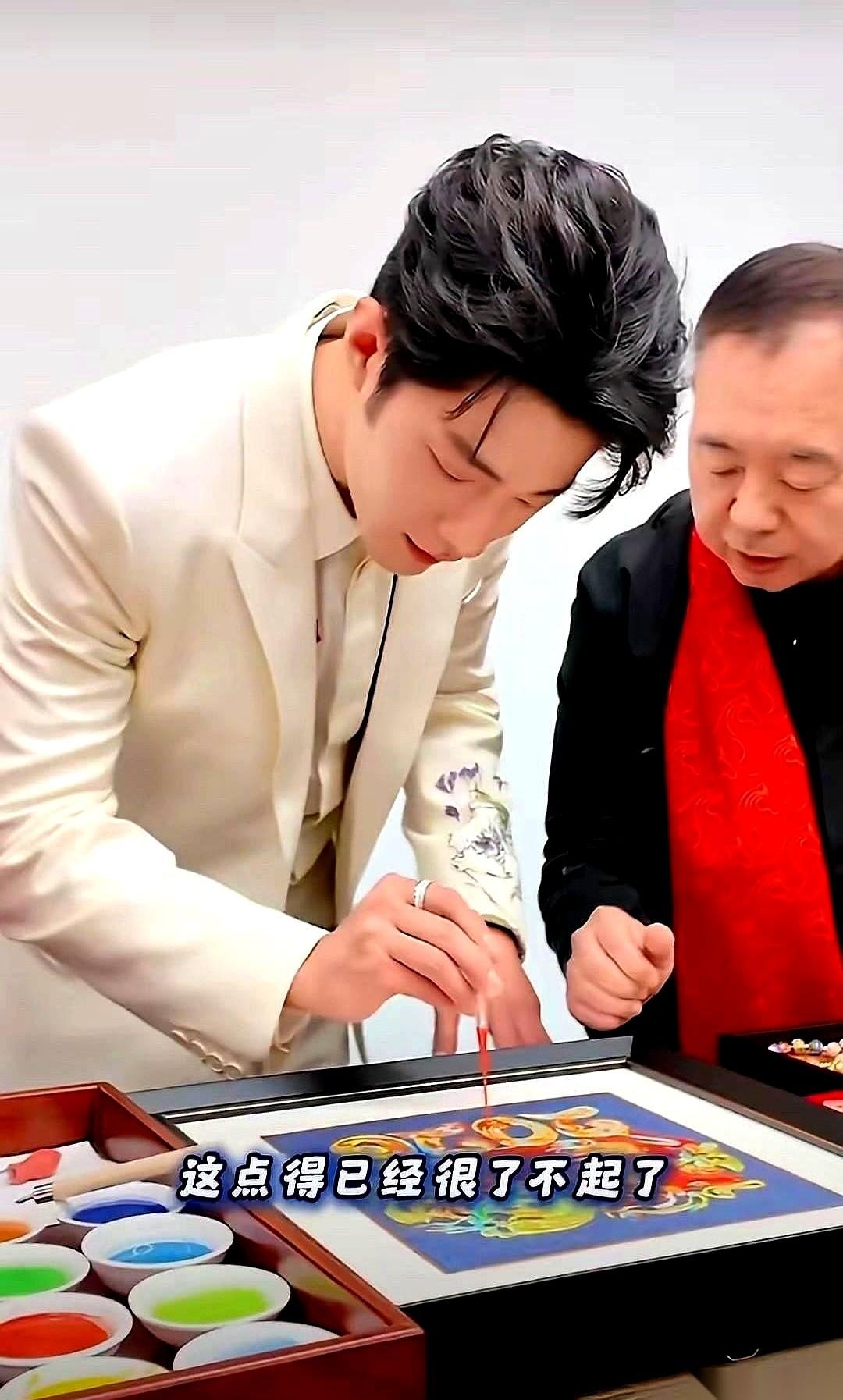 肖战也就是去体验一下景泰蓝,结果旁边一位非遗老大师,指着他刚画完那幅,当场就要“抢”。 老先生是真急了。 凑过去,盯着那幅画,嘴里一直念叨:“太专业了,这手太稳了。” 一句话,直接把这位见过大场面的人给说得低下了头,耳朵连着脖子,一片通红,手都不知道该往哪儿放。 但老先生没管他害不害羞,紧接着又补了一句,这话才是全场的重点。 他对着肖战说:“这幅你必须带走,不然被别人拿下,恐怕要卖很高的价。” 听听这话里的意思。 老先生不是怕这画卖不出去,他是真怕这门手艺,被不懂行的人当成普通的明星周边给收走了。