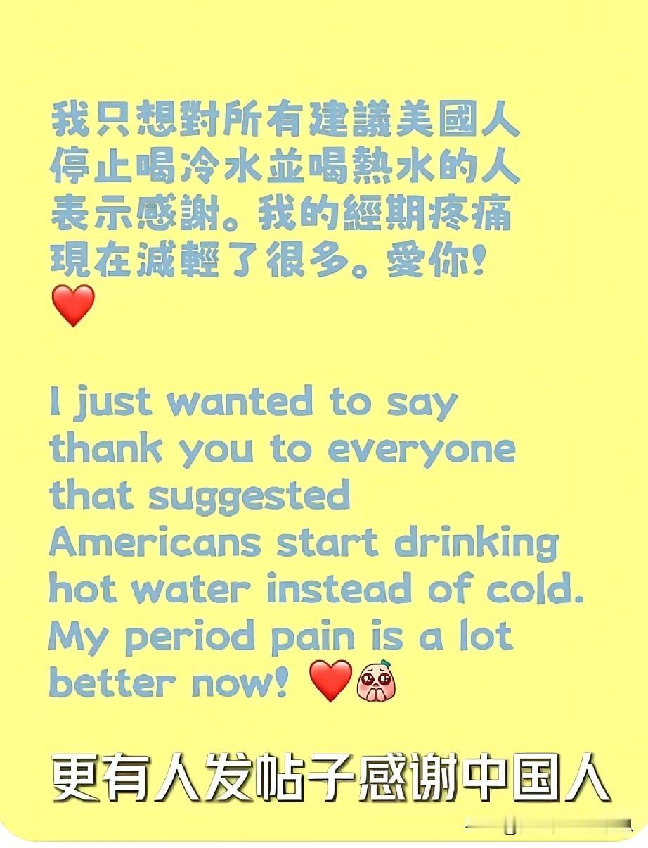 看到很多外国人模仿咱们东大的生活习惯,比如喝热水、坐月子等等。 有评论说,外国女人在痛经的时候,会吃很多止痛药,而不是像咱们一样喝热水、躺床上睡觉,评论认为这会导致她们老了以后有很多健康问题。不管是痛经还是其他身体不舒服,我们都应该用正确的方式去缓解,而不是依赖药物。 也挺佩服那些想嫁给咱们东大男子的外国女人,如果她们真的喜欢那样的生活方式,那嫁过来也挺好的。如果她们只是想逃避学贷,就随便找个老外嫁了事,不愿意花时间深入了解咱们的文化,那这样的嫁过来干嘛呢?不明智。