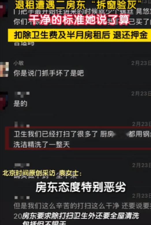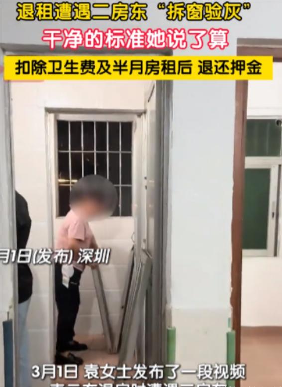 太损了!2025年3月1日深圳,一女生想退租,房东却以窗户缝隙里有灰,拒绝退钱!女生无奈报了警,没想到,房东看到民警一点不慌,民警看不下去说了几句,结果,房东还让民警不要插嘴!他还解释:不是不退钱,而是要打扫干净,干净的标准他定,只要他说不合格就是不合格! 在深圳打拼多年的袁女士厌倦了一线城市的快节奏和漂泊感,决定回老家安稳生活,而退租押金是她省吃俭用攒下的返乡路费和启动资金,容不得半点差池。 为顺利拿回押金,袁女士提前好几天主动找房东沟通,反复确认3月1日交房退押金,随后又提前两天回到空置的出租屋,展开了一场近乎“开荒级”的清洁。 这间不到20平米的小屋子,每一个角落都留下了她的身影。 地板用钢丝球蹭掉顽固污渍,擦洗后亮得能映出人影; 卫生间瓷砖缝被仔细清理,马桶、洗手池无一丝水垢,地漏干净无异味。 尤其是窗户,她把玻璃擦得透亮无水渍指纹,反复擦拭窗框边缘和防盗网,连细小缝隙都没放过,还特意拍了照片视频留存证据,避免后续扯皮。 3月1日当天,袁女士早早在出租屋等候,攥着清洁照片,盘算着拿到押金就直奔车站赶返乡班车。 可房东进门后的举动,瞬间击碎了她的期待。 房东无视光洁的房屋整体,径直走到窗户边蹲下,死死盯着窗框缝隙,用手指抠出那些几乎要用放大镜才能看清的浮灰,随后语气强硬地宣布卫生不合格,押金一分不退。 袁女士当场懵了,她提出立刻清理补救,可房东态度坚决,丝毫不给机会,摆明了要克扣押金。 两人就这样僵持了将近一个小时,袁女士耐着性子好言相劝,可房东始终油盐不进。 万般无奈之下,她双手颤抖着拨通了110,只希望民警能到场为自己评评理。 民警很快赶到现场,仔细查看了屋内各处,忍不住感叹袁女士打扫得十分干净,连窗户缝隙里那点浮灰,远达不到克扣押金的程度,当即劝说房东不必如此较真。 可谁也没料到,面对民警的调解,房东非但没有收敛,反倒情绪骤然激动,当场大声呵斥、打断民警说话,态度嚣张至极,甚至直言让民警“别多管闲事”。 更让人窒息的是,他当场拆下厨房和卧室的玻璃窗,辩解自己不是不退钱,只是干净标准必须由他定,只要他说不合格,就一定不合格。 原来,房东之所以嚣张,不仅因为双方无书面续约合同,还因为他摸清了规矩——民警对租房押金纠纷只有调解权,无强制执行力,即便觉得他没理,也不能强行要求退钱。 袁女士看着手机里的车票心急如焚,她知道打官司维权耗时耗钱,根本耽误不起,在民警半个多小时的调解下,最终选择妥协。 房东扣除100元卫生费和1075元“房屋空置招租预留费”,共计1175元,最终只退给袁女士2150元。 袁女士拿着被扣后的押金,看着自己辛苦清洁的屋子,含着泪转身离开深圳,这场纠纷以她的妥协草草收场,房东却依旧执迷不悟。 类似袁女士的遭遇并不少见,很多租客退租时都会遭遇房东无理刁难,却因维权成本高只能妥协。 值得一提的是,2017年施行的《住房租赁条例》明确规定,除合同约定情形外,房东无正当理由不得扣减押金,深圳也上线了住房租赁监管服务平台,为租客维权提供保障。 相关法律也明确,租赁期满后,若合同无明确清洁标准,租客只需保证房屋合理清洁即可,房东无权制定“霸王标准”。 租房不易,每一笔押金都是租客的血汗钱,不该成为房东敛财的工具,房东的蛮横,是对法律的漠视和对租客权益的侵犯,终究会受到谴责和约束。