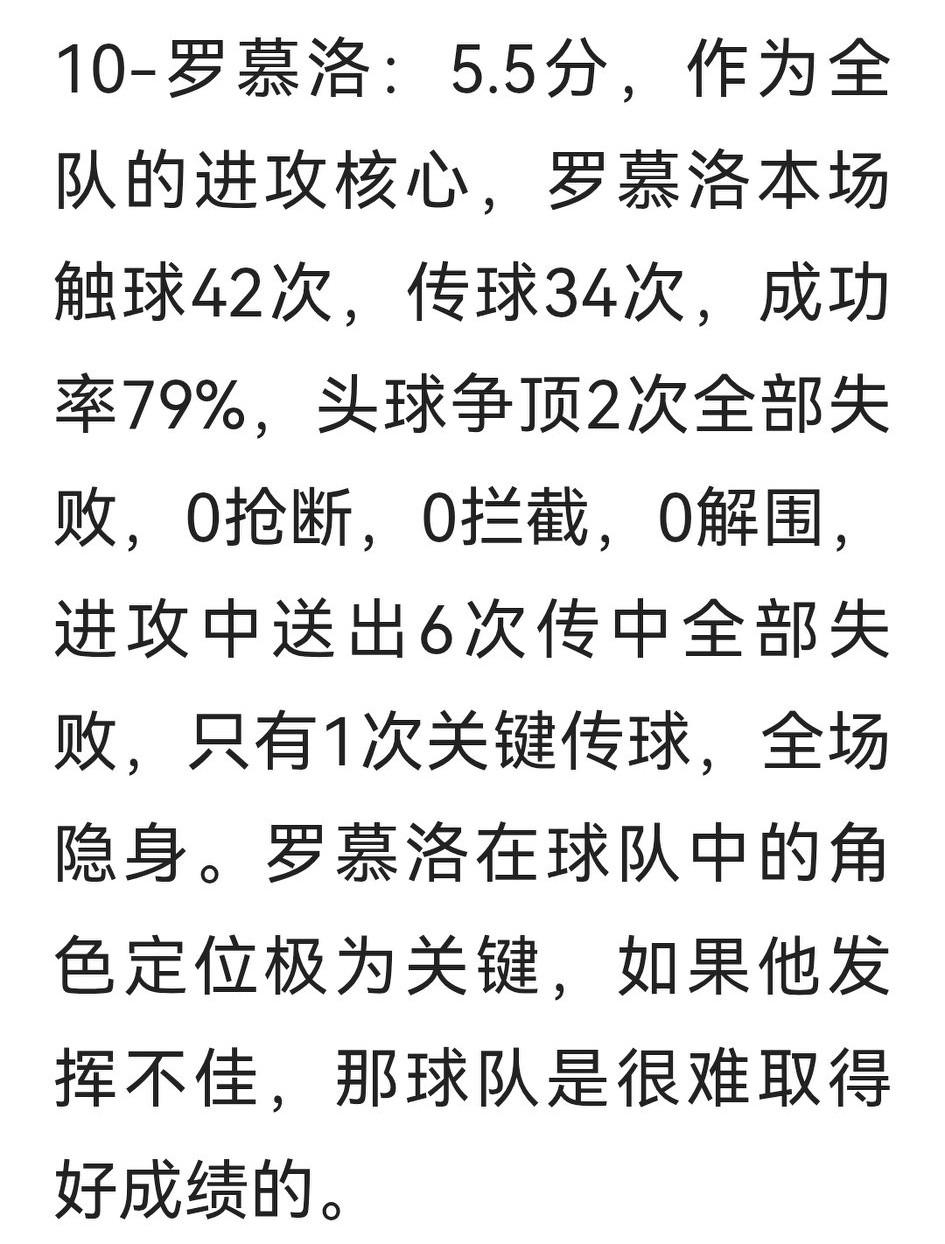 成都蓉城新赛季打了两场硬仗,与全都输球的失望相比,罗二娃的表现更让人失望,我怀疑他心里还在纠结没当上队长。 昨天,罗二娃触球42次、传球34次、成功率79%,基本过得去,但2次头球争顶和6次传中全失败,其组织核心作用明显够呛。特别是全场0抢断、0拦截、0解围,这显然不是意识和能力问题,而是心理和态度已先期破防,近乎不争不拼、不堵不抢。 回想在2月9日战武里南联的新闻发布会上,罗二娃高调宣称自己是“领军人物”、要当队长,可队长袖标最终却戴在了韦世豪臂上。估计,老罗有点失望,场上的表现立马一落千丈。如果真是心理问题,阿洛伊西得好好与二娃做点心理按摩,领军人物看场上表现,别太在意是不是名义上的队长。