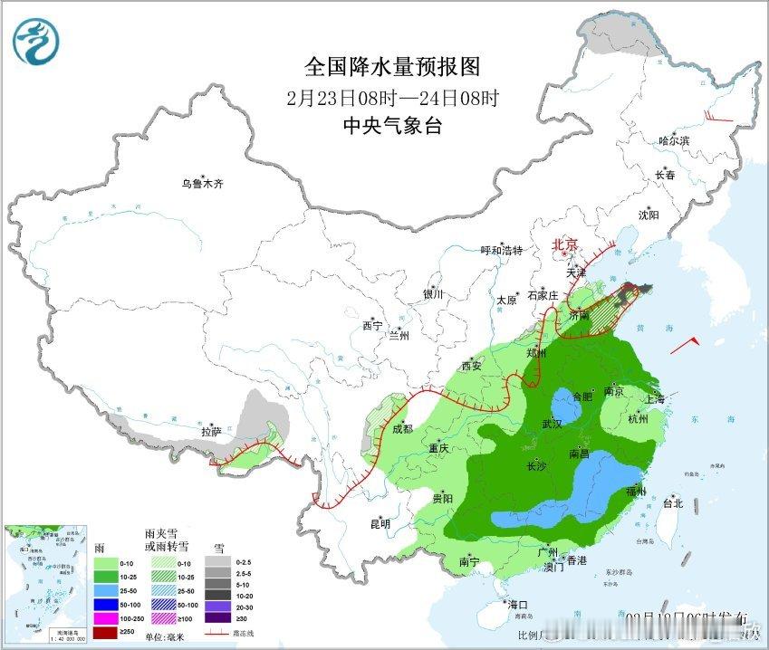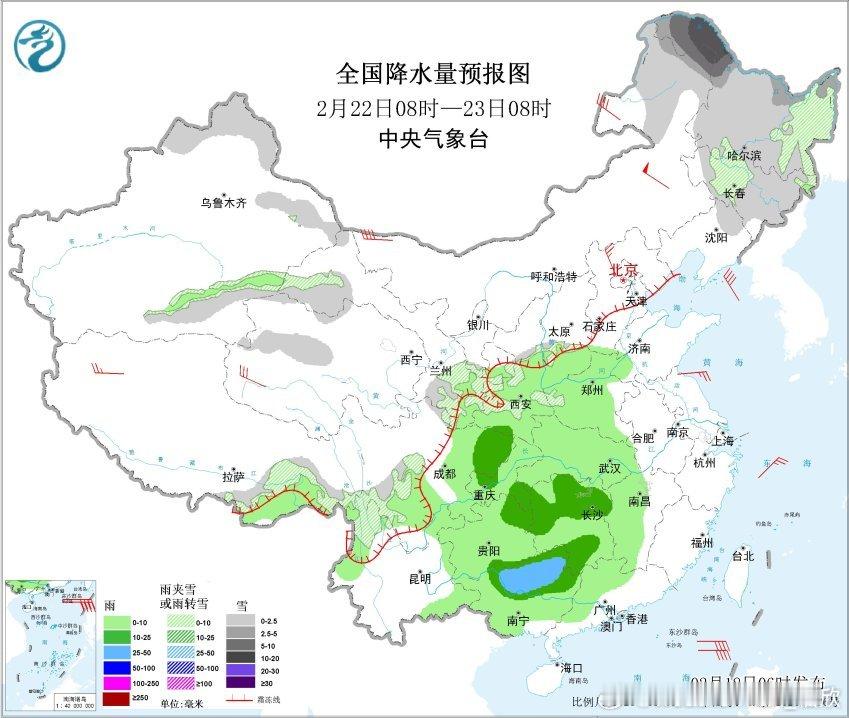 22-24日晨(初六-初八早晨),我国黄河以南地区有大范围雨雪。陕西中南部、山西南部、河南、山东一带降水相态待定,如果冷空气强一些、南下快一些,有可能出现明显降雪,反之下雨为主。但这轮降水过程跑不掉,可能影响春运返程。