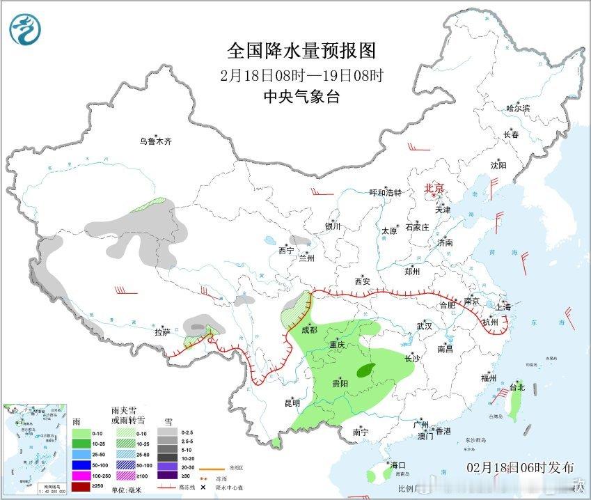 今天海南降雨缩减,在四川重庆贵州广西等地还有小雨。明天南方降雨带变得细长,从贵州向湖南江西延伸。从块状变长条状。此外明天在新疆北部,塔城、阿勒泰一带降雪增多,局地有大雪-暴雪。