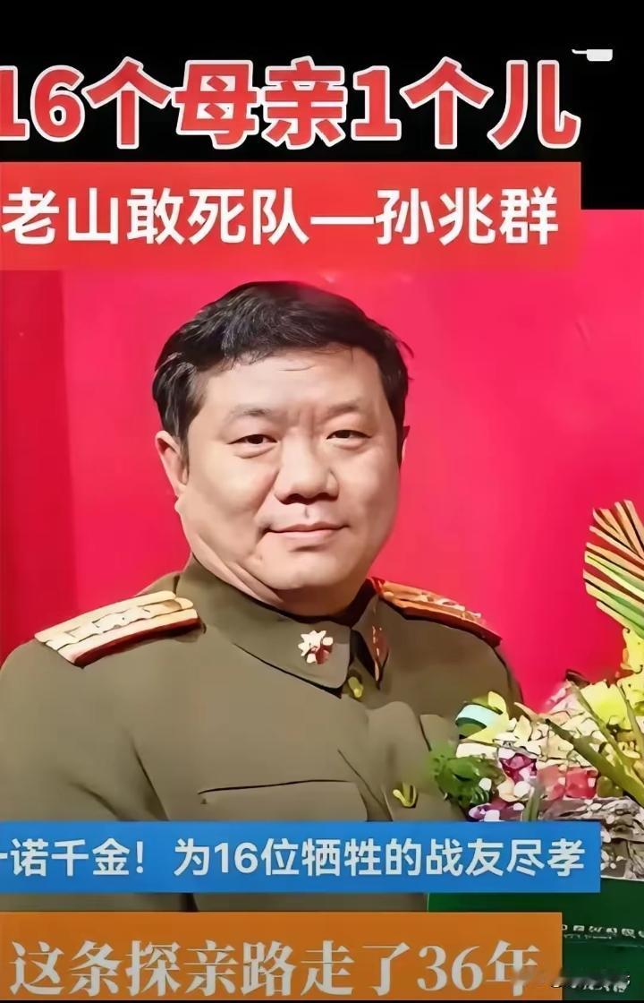 “老山敢死队队长孙兆群,山东淄博人,1985年,在南疆自卫反击作战的一次战斗中,身为突击队长的原67军199师大功七连副连长孙兆群,他带领52名突击队员仅用25分钟,就攻克了被越军占领的“968”高地,歼敌87人,圆满完成了战斗任务。全连荣立集体一等功。令人痛心的是,战斗中,他所在连有16名战友为国捐躯,永远留在了战场上。孙兆群自己也身负重伤,体内有17枚弹片。其实上战场前,孙连长和大家有过一个约定。不管谁活着回去,活着的都得死了的兄弟尽孝,给他们爹妈养老!所有人都喊“好”现在,他是活着回来的人,这债,他得还。” 1986年伤稍微好点,孙兆群第一件事就是找出16个烈士的档案,照着地址给每家写了封信,落款就写“兆群儿”。他把参战时攒下的1300多块工资平分16份,连同信一起寄了出去,就这么认了16对爹妈 。 往后这些年,他真是拿自己当亲儿子使。16户人家的大事小情他都管,跑的路加起来超过10万公里,光是休假攒下来的500多天里,有400多天都花在了看望这些老人或者去探望他们的路上 。 对年龄最小的烈士顾克路父母,孙兆群照顾得最上心。顾克路父亲顾天金2019年临走前想穿军装,孙兆群跑了好几个仓库,硬是把抗美援朝时期的旧军装凑齐,给老人穿上 。顾妈妈庄凤云后来生病,他也是跑前跑后伺候,直到2021年老人去世 。 不光是照顾老人,他还惦记着活着的伤残战友。一等伤残军人孔凡超当初消沉得不行,孙兆群把他接到家里一住就是俩月,慢慢把人心给暖过来了 。战友孙彦杰家里困难,他也是带着钱和东西一趟趟往人家跑 。 从战场下来到现在快40年了,当年的副连长成了退休的老兵,可他对16个家庭的承诺从来没变过。那些烈士的父母走的时候,他基本都守在床边,像亲儿子一样送终 。 这人这辈子就干了一件事,把战场上的玩笑话当真,当真了一辈子。嘴上说是还债,其实是心里头装着那份过命的交情。现在社会上人精多,算计多,像他这样认死理、一根筋的人不多了。孙兆群这种人不该被忘,他让咱明白啥叫一口唾沫一个钉,啥叫活着的给死了的有个交代。