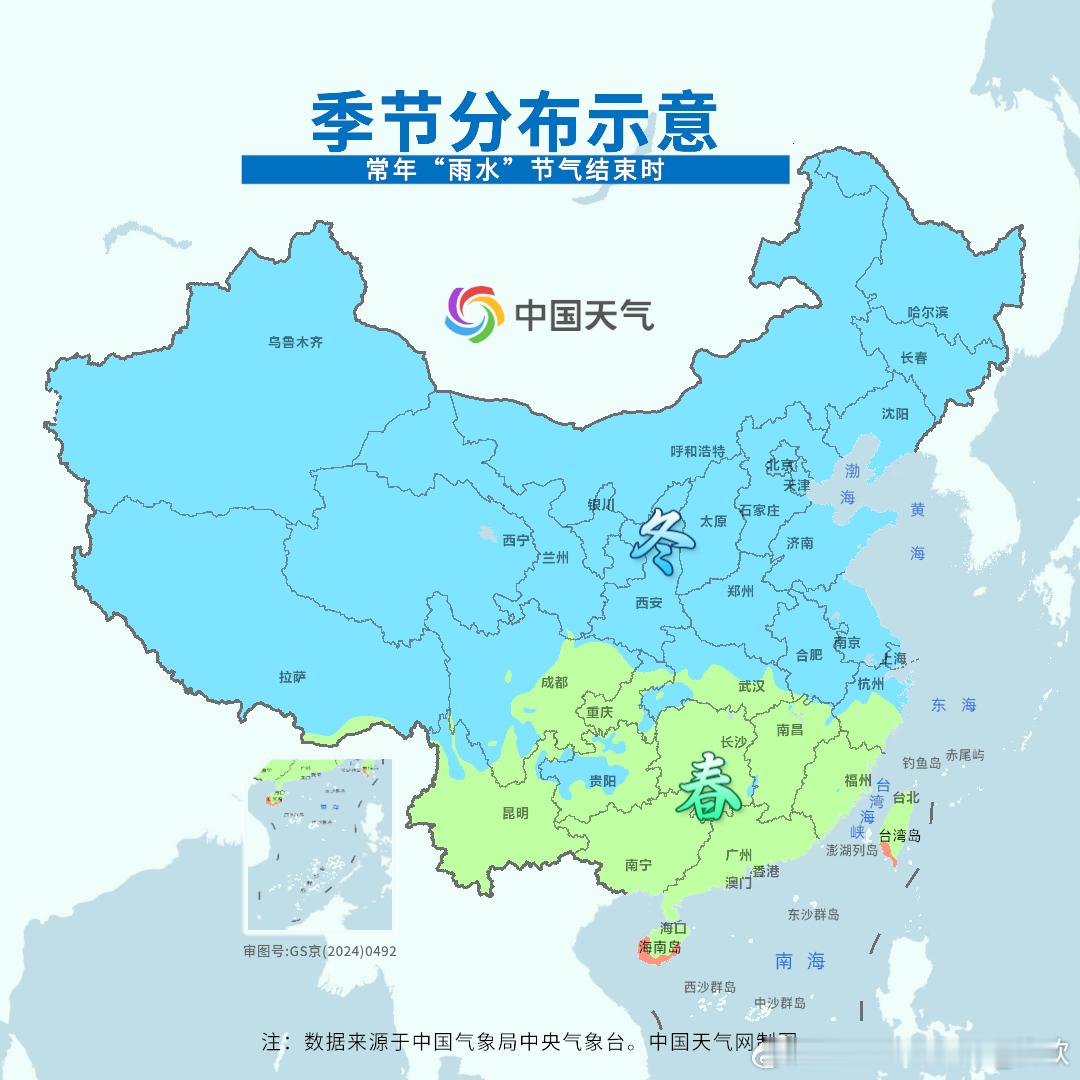 【换季】目前海南岛和台湾岛南部已经入夏,冬春分界还位于华南北部-江南南部,基本符合常年的情况。常年雨水节气期间,长江流域多地将入春。不出意外的话,南昌2月20日就会入春,常年2月25日,今年大概率小幅提前。