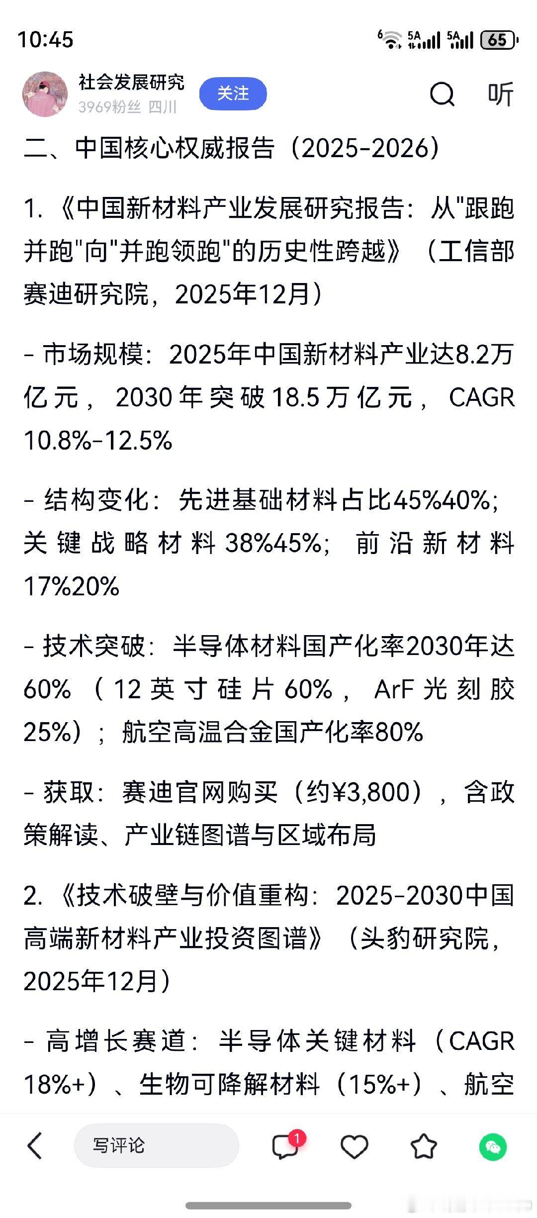 “新材料”,去年11月写入置顶微博。其原因,是个人透过中期均线排列和长期均线排列,清晰地看到了投资机会!实践中,其实并没有做好。个人目前持仓,半导体及航天航空新材料。正确的眼光,坚持的心。