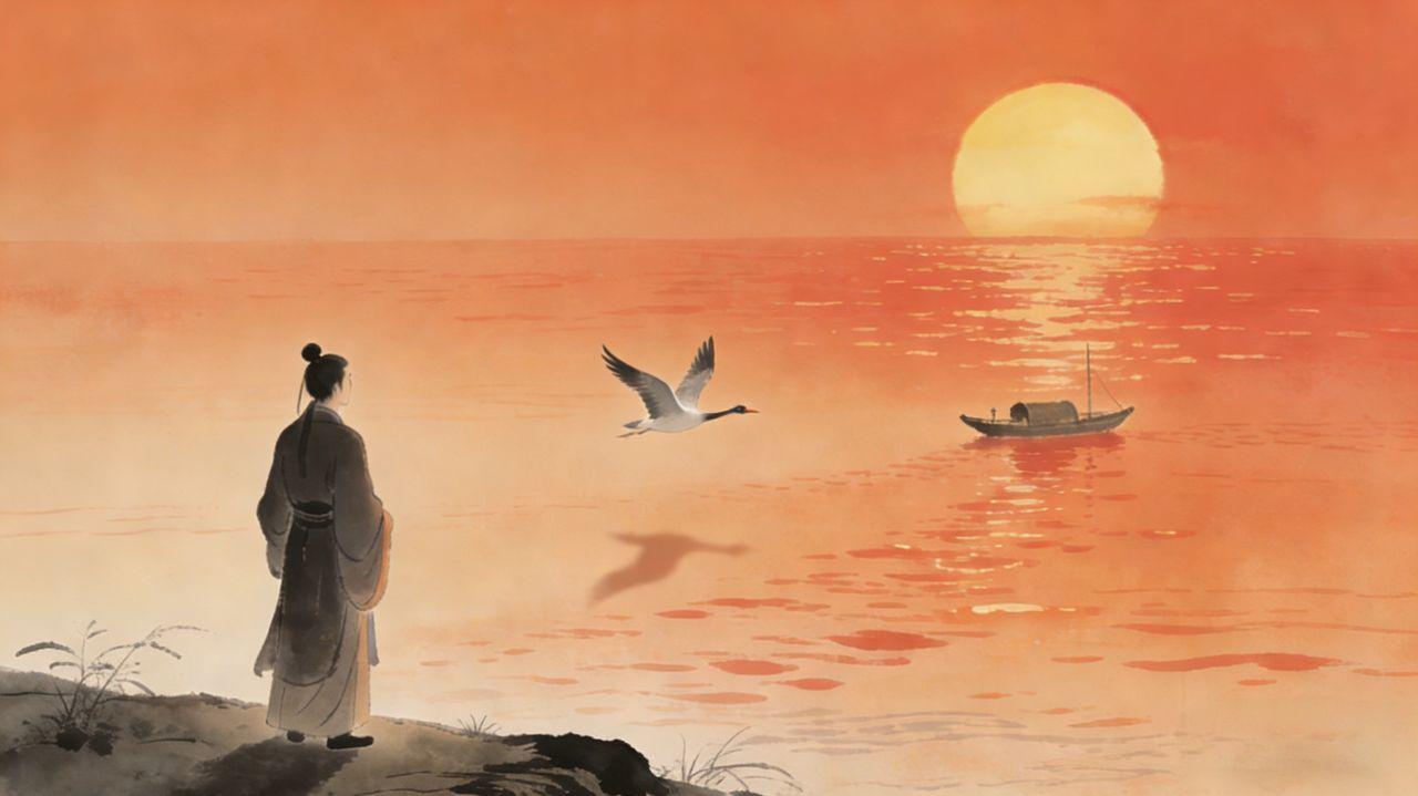 《江畔送别》 斜阳半落映江红, 归雁孤飞影渐朦。 目送轻舟行渐远, 不及王伦送我情。