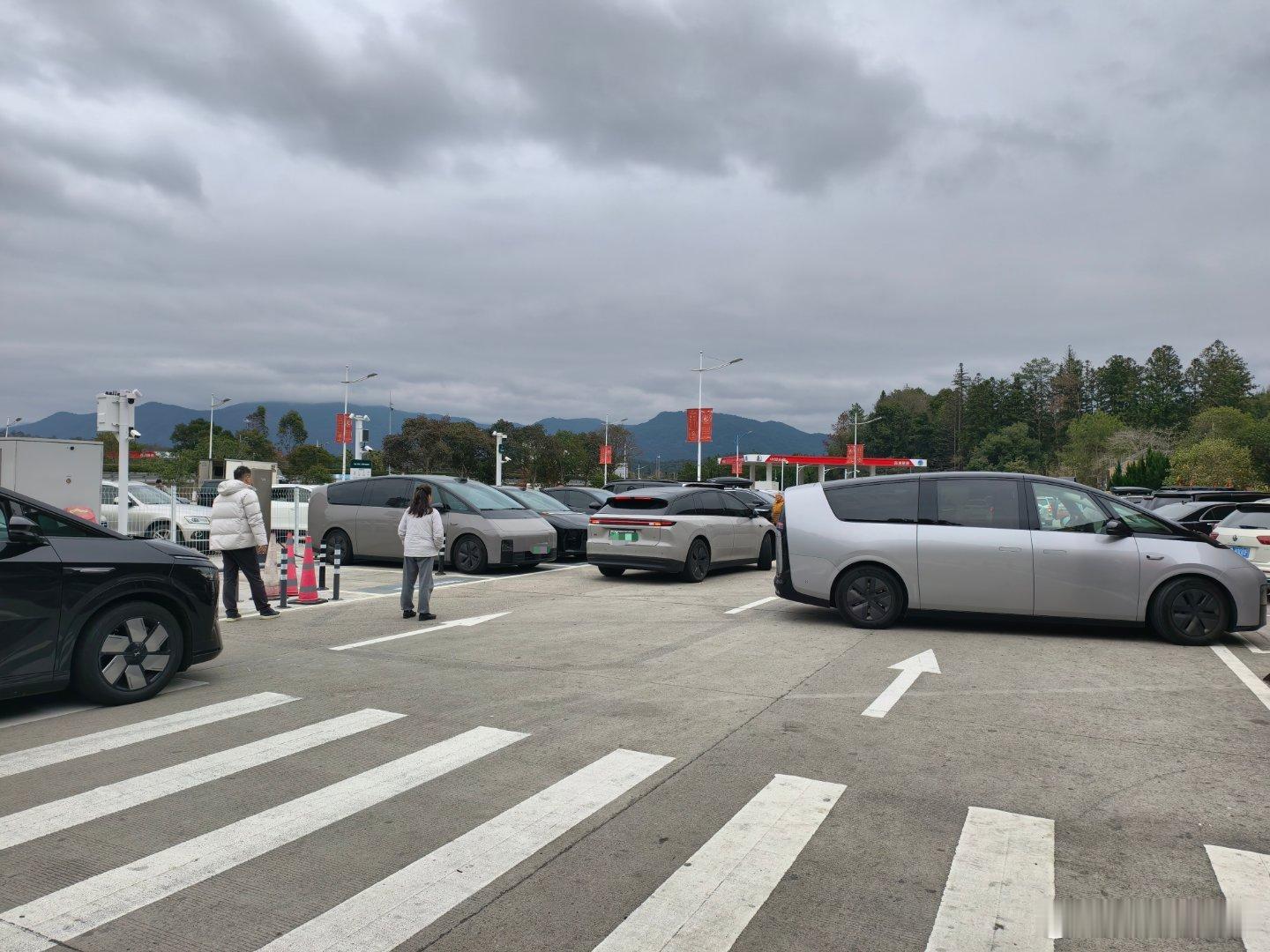 而且因为理想的车在充会吸干功率,其他品牌的车功率会很低,其实还不如去第三方充电桩充,我这次就看到好几个车没充多久就因为太慢了走了。