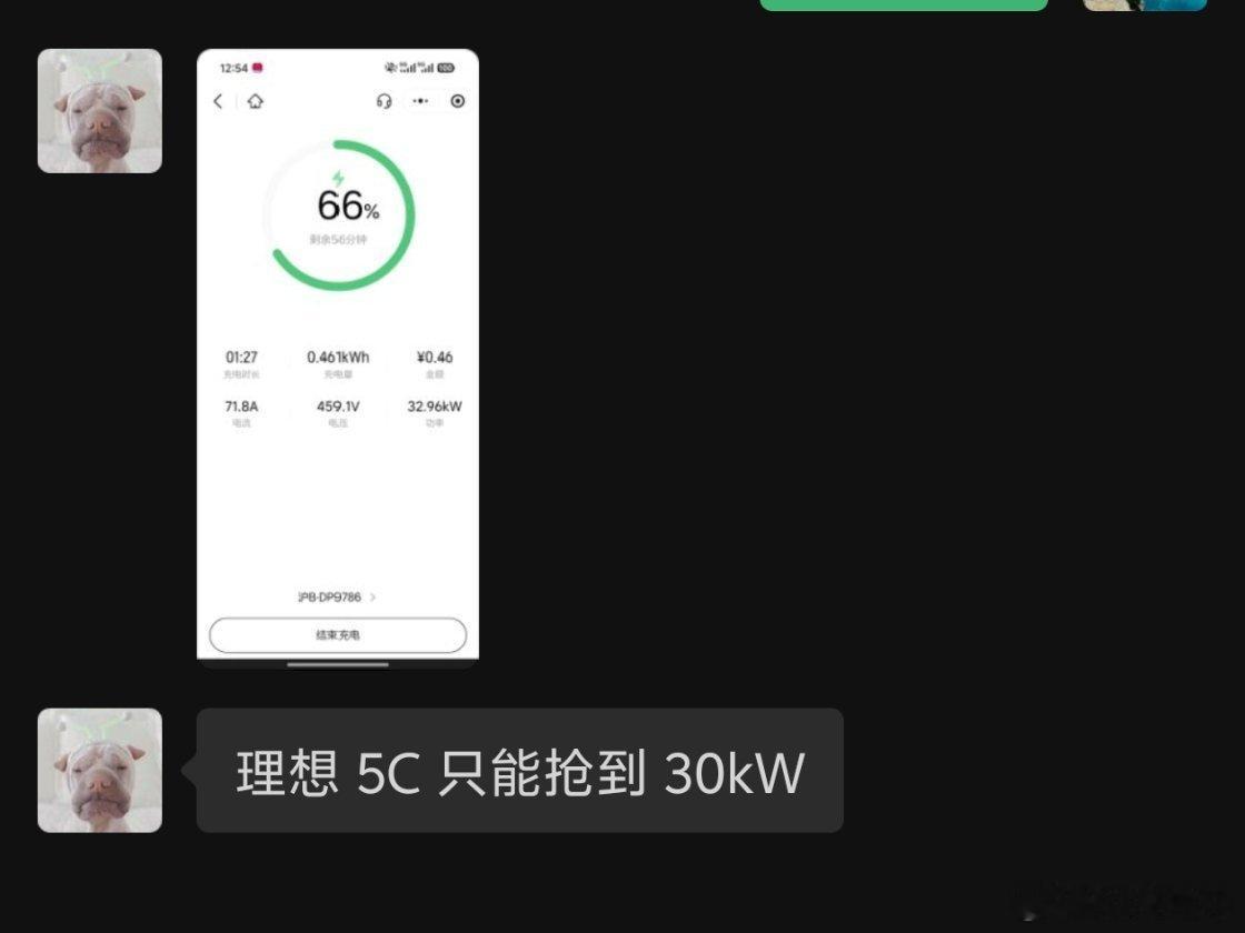 我们同事开其他品牌的车去理想 5C 充电,全场一辆 MEGA,两辆特斯拉的情况下,他只有 30 kW 的功率。(图五)