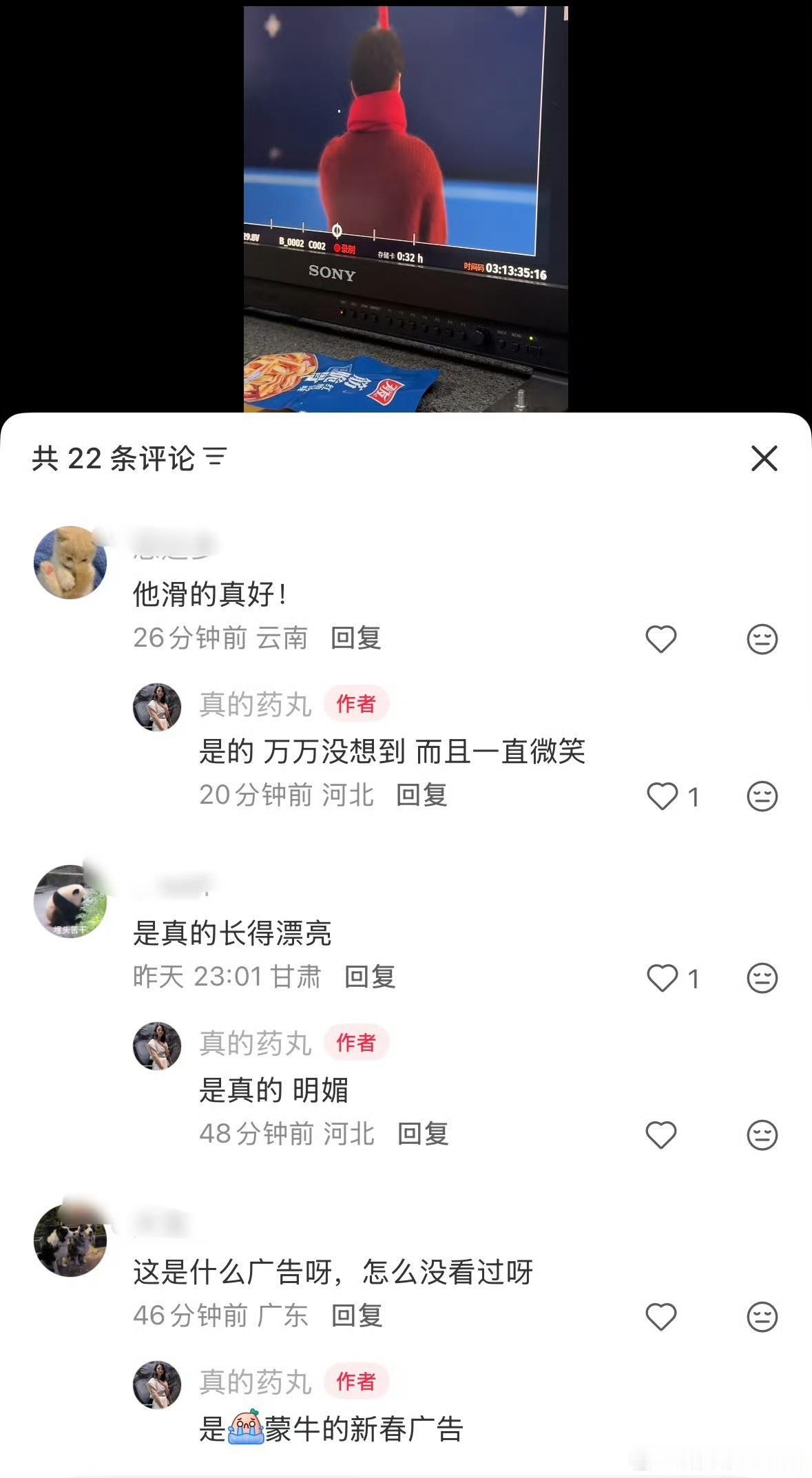 拍摄蒙牛冬奥宣传片的工作人员发了幕后故事,还有视频。视频里他们一群工作人员都对着监控器里的肖战惊叹,被他迷住了[笑哭][我想静静]