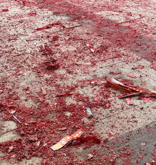 你们那里禁鞭了吗? 这边除夕晚上简直就是全城轰炸、硝烟弥漫。 当地的老太太说, 今年放的比以前少多了, 估计是经济不景气, 这满地的鞭炮碎屑, 空气里浓烈的硝烟味, 让人出门都要戴个口罩。 还是老家好, 禁鞭了, 到处安安静静,干干净净的。
