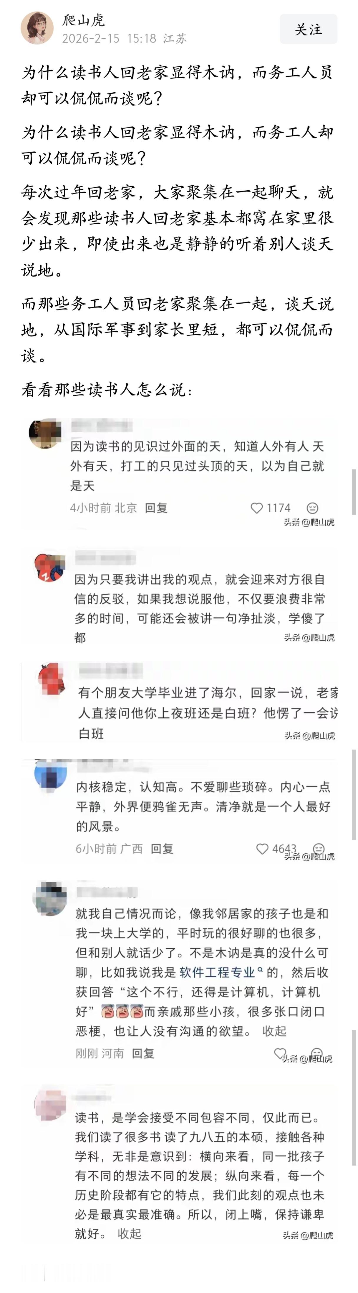 为什么读书人回老家显得木讷,而务工人员却可以侃侃而谈呢?