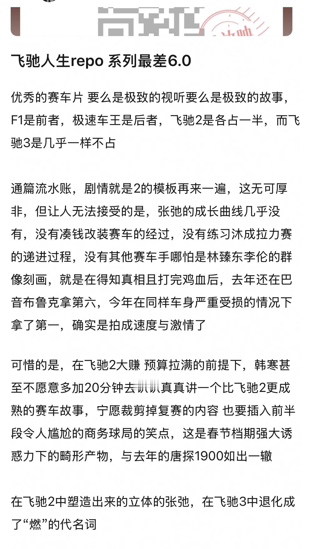 沈腾的《飞驰人生3》口碑也崩了,很多人说比前两部差,甚至不如周杰伦那部头文字D,而且剧情很俗套…