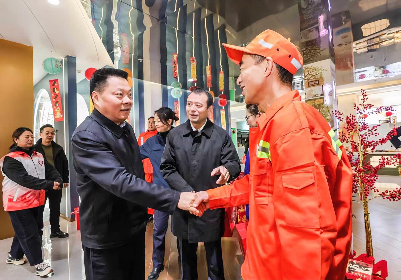 2月17日大年初一,江苏交控党委书记、董事长王先正到省高速公路调度指挥中心、沪宁高速黄栗墅服务区,调研督导春节安全保畅工作,并看望慰问春节期间坚守岗位的一线员工。