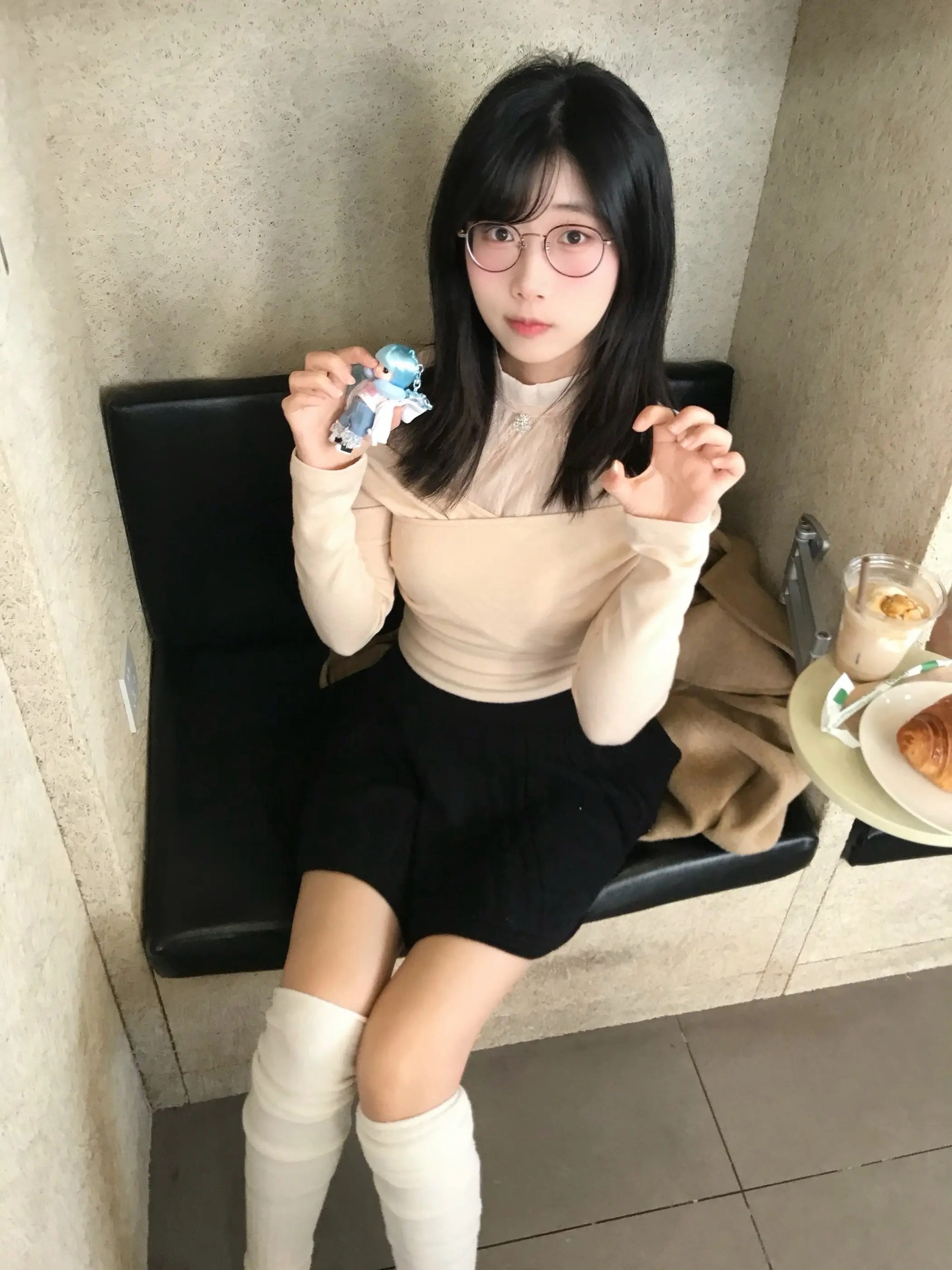 咖啡馆拍照 甜妹 拍照姿势