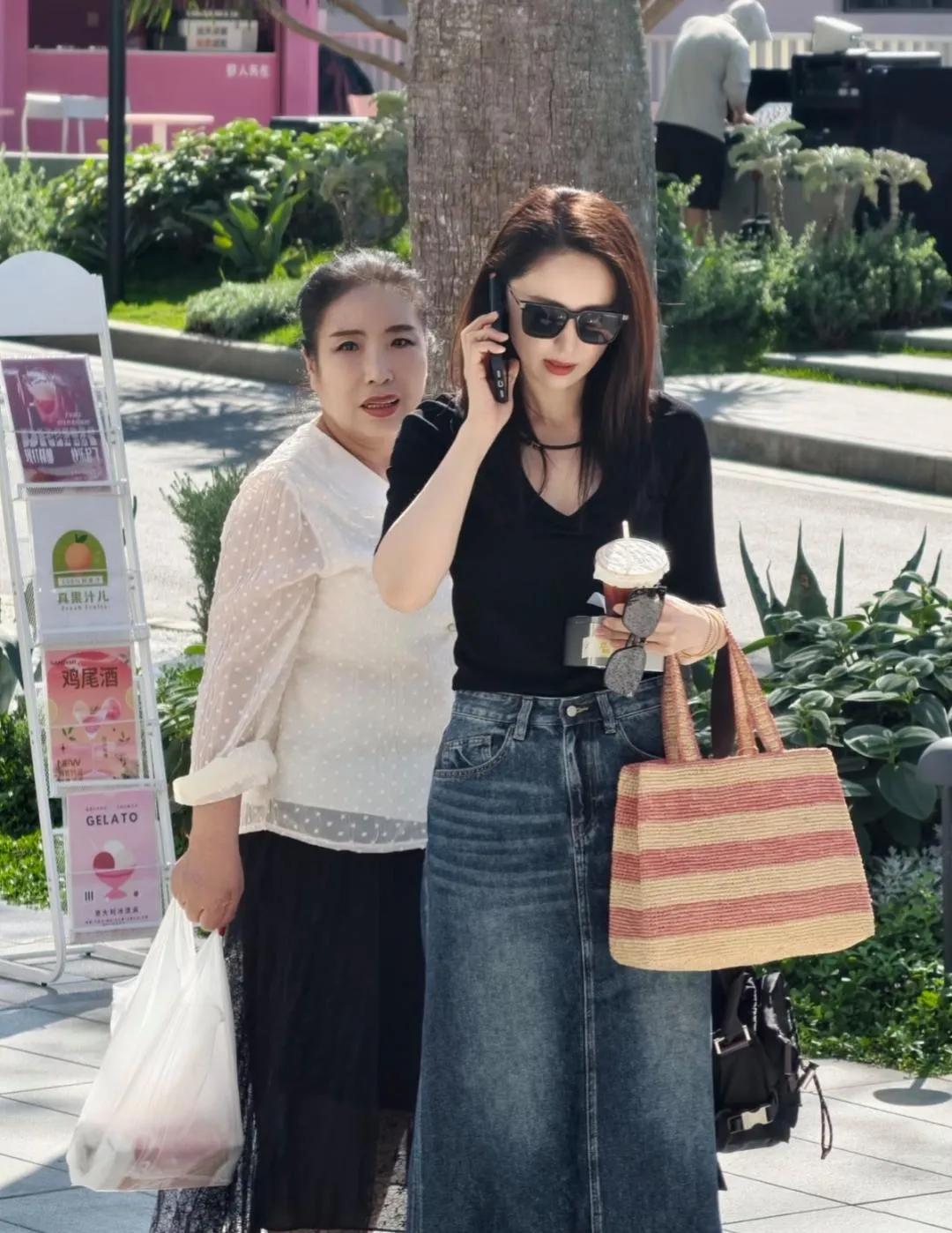 董璇三亚生图,这状态我服了! 47岁董璇三亚被偶遇,黑上衣配牛仔裙,皮肤白皙,身材在线。 与老公张维伊同框温馨,生图状态引网友夸赞。 董璇 明星生图