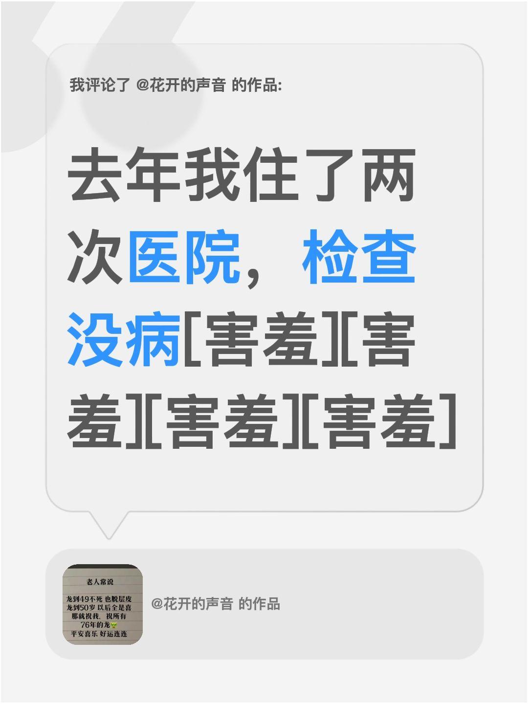 我评论了@花开的声音 的作品: 去年我住了两次医院,检查没病[害羞][害羞][害羞][害羞]