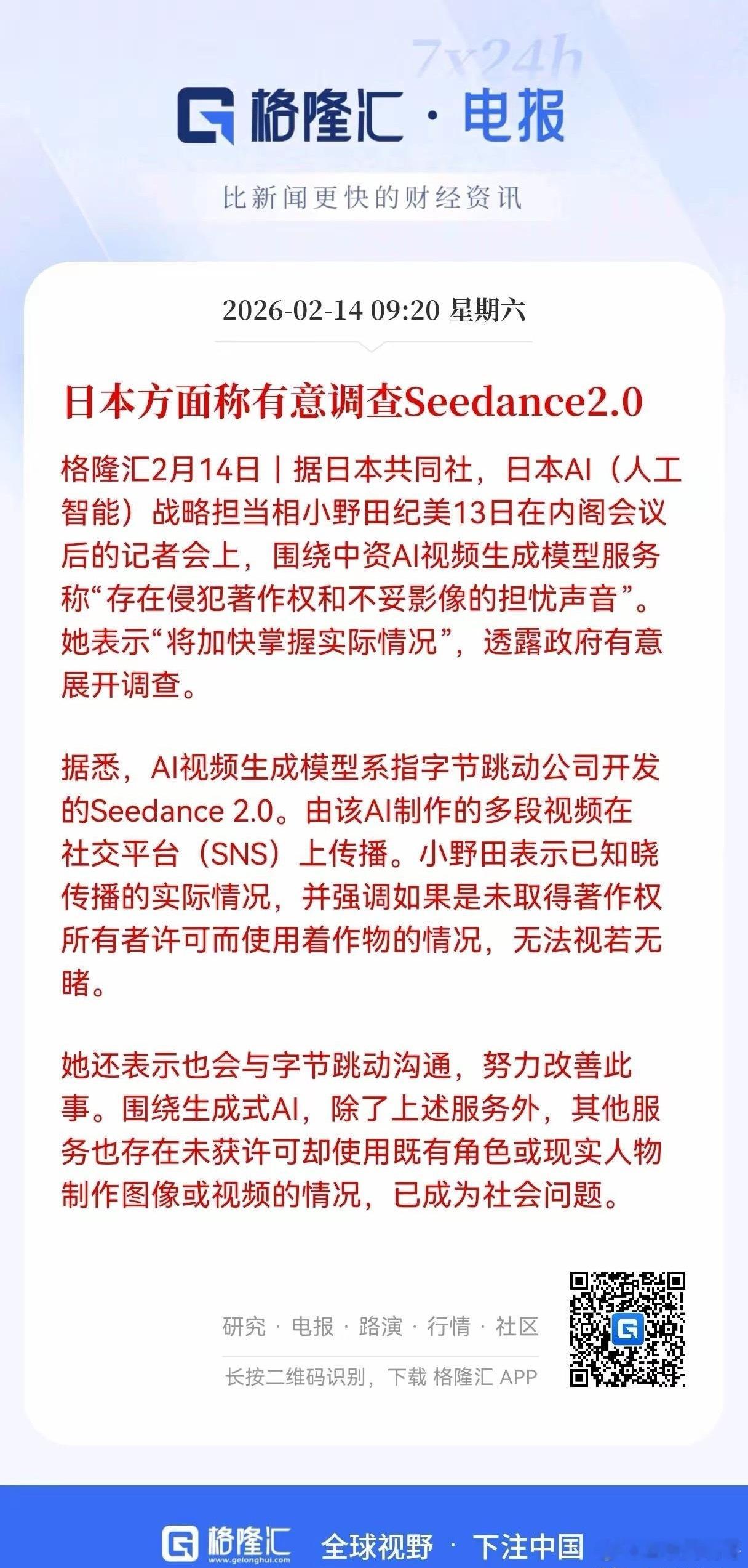 随着字节跳动Seedance 2.0的火爆,让西方国家彻底坐不住了!继迪士尼,好莱坞要求围堵字节跳动的Seedance 2.0!日本也加入了围堵的行列!纷纷以侵犯著作权,不妥影像为由进行打压!当年OpenAI、谷歌AI训练时用遍全球版权素材,怎么不见他们跳出来喊停?现在中国AI在视频生成领域实现突破、威胁到西方内容霸权,就立刻拉偏架、搞封杀。所谓“版权保护”,不过是西方遏制中国科技崛起的工具;所谓“监管调查”,就是赤裸裸的贸易保护。Seedance 2.0的火爆,恰恰证明中国AI已经威胁到了欧美的领导地位,狠狠戳中了西方的痛点。文娱IP一直是我们的短板,现在正好借着中国科技的东风,让中国文娱产品真正走向世界,靠技术和创意,超越迪士尼、碾压日漫,打出属于我们的文化主场!实现中国科技+中国文化双重螺旋发展!以改变我们与欧美攻守之势!