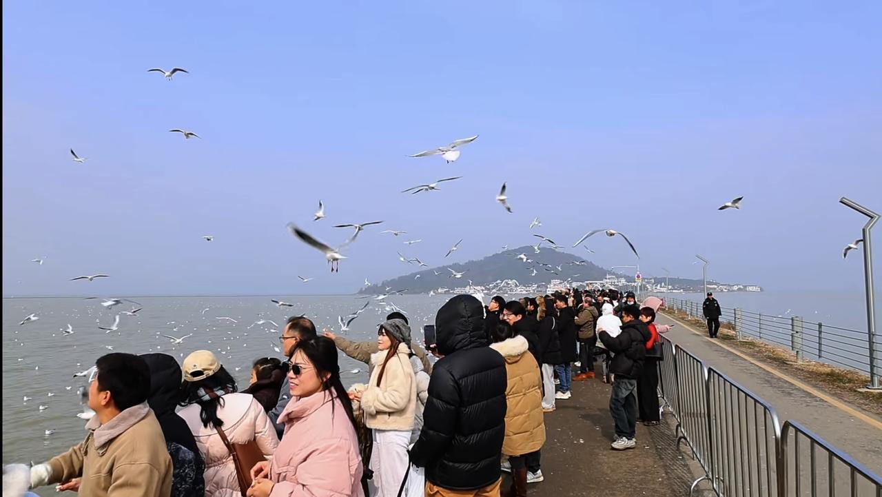 苏州西山横山岛,最近都是来看红嘴鸥的。 春节里人太多太多,千万别来了。 大年初二想去看海鸥, 好家伙,堵车堵了好几公里, 好不容易找到空车位停进去了, 步行又要几公里, 再去桥上看红嘴鸥, 结果人比红嘴鸥还要多。 这节日里,出门旅游就是遭罪, 还是窝在家里吧!