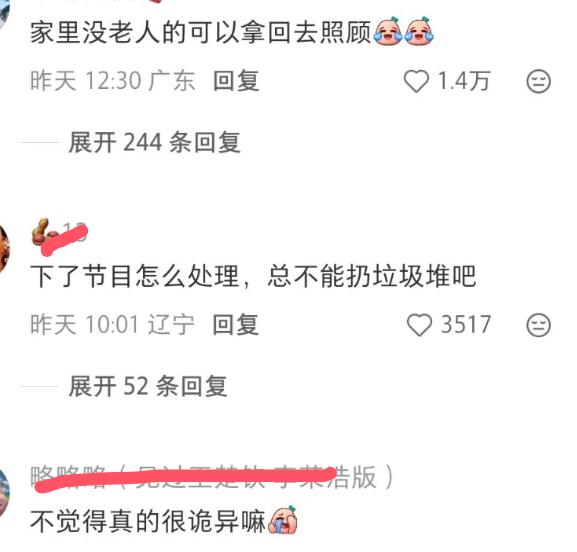蔡明仿真机器人推出来有什么意义呢?网友好奇,节目结束后放哪里呢,难道扔掉吗?网友拍到工作人员推着蔡明仿真机器人出来,坐在轮椅上一动不动,板着一张脸,看着十分诡异。有人调侃,家里没老人可以退回去照顾,还有人表示,看着恐怖,以后机器人不会代替人类了吧,不过这仿真效果确实不错,与真人基本没区别啊!
