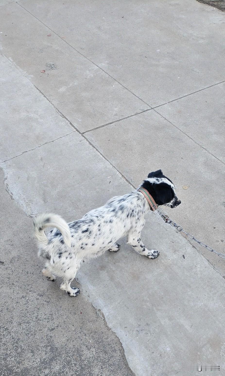 我家这只小狗,叫“小罗罗”,身上的毛白花花的,还撒着好多黑点点,跟撒了一把黑豆似的,特别显眼。 它的脑袋和耳朵是纯黑的,就像戴了个小帽子,跑起来的时候,那对黑耳朵一颠一颠的,特别逗。 今天我牵着它出去遛弯,可兴奋了,小尾巴翘得老高,一个劲儿往前冲,链子都被它扯得哗哗响。 它一会儿低头闻闻地上的小石子,一会儿又抬头看看远处,好像在侦查什么大案子。 这小家伙虽然不是什么名贵品种,但特别黏人,我一回家它就围着我转,用脑袋蹭我的腿。 看着它傻乎乎又活泼的样子,一天的烦心事都没了。有它陪着,这日子就像加了糖,甜滋滋的。