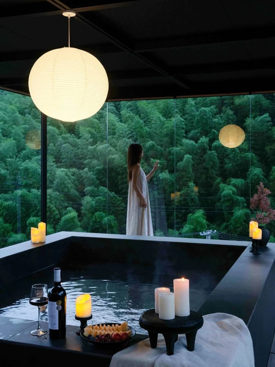 The resort is built around natural hot springs.(这个度假村建在天然温泉周围冬天就是适合泡温泉 居家美学的设计 山乙山合 青竹园别墅 温泉 浴缸 现代风格设计 ▪️ 竹海为幕,温泉为席 ▪️ 把日子过成诗的地方 ▪️ 安吉私汤天花板,我先躺为敬 ▪️ 逃离城市计划,在山野里治愈自己 ▪️ Bamboo sea as the backdrop ▪️ Anji's hot spring top tier — I'm already relaxing.