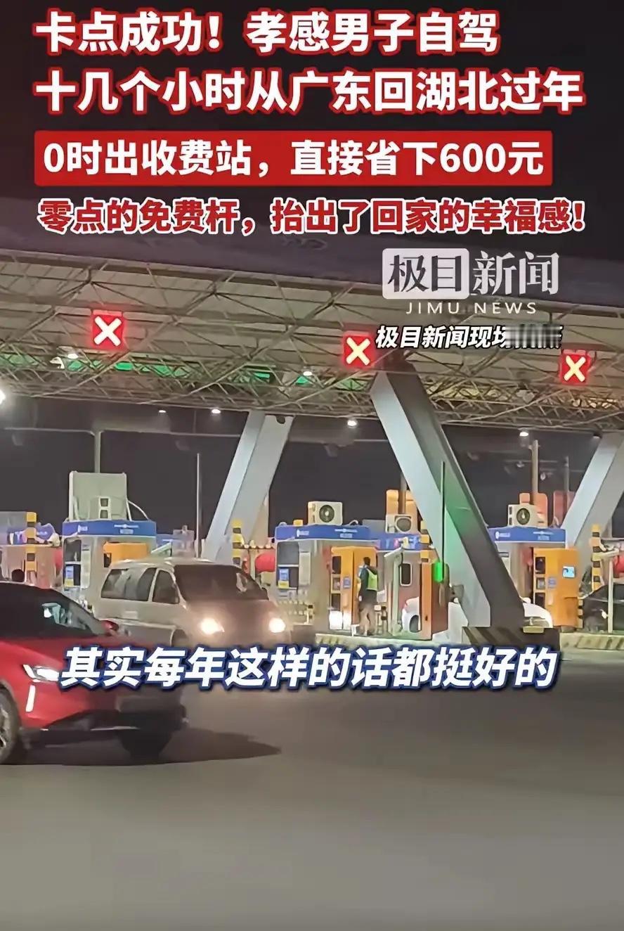 到底值不值?男子从广东自驾回湖北孝感过年,他早上7点上高速,却一直没有着急往家开,反倒是一路磨磨蹭蹭,最后卡点出收费站,省下了600块的过路费,不过这算盘打的却让网友吵翻天。 他上高速后刻意把车速压到接近最低限速,遇到服务区就停车停留,喝水、吃饭、刷手机,全程没有半点赶路的急迫感。导航上的预计到达时间被他反复调整,每一步操作都围着零点免费时段转,就为了精准卡在免费节点驶出收费站。 2026年春节高速免费执行统一标准,2月15日0时至23日24时,7座及以下小型客车通行全国收费高速全部免费,计费规则以车辆驶离出口收费车道的时间为准。广东到湖北孝感全程约1100公里,正常行驶的高速通行费刚好在600元上下,他算透了政策规则,用拖延行程的方式,一分钱通行费都没花。 网友的争论分成了立场鲜明的两拨。有人站在生活现实的角度,觉得男子的做法完全能理解。在外打工赚钱本就辛苦,600块足够置办一家人的年货,给父母添点营养品,能省一笔是一笔,这是普通人过日子的实在。 更多网友把关注点放在安全上,直接提出批评。高速路段设有明确最低限速,长时间低速行驶会变成移动路障,迫使后方车辆频繁变道超车,春运期间车流量大,这样的行为极易引发剐蹭甚至追尾事故。他全程驾驶时长远超正常行程,疲劳状态下反应能力下降,风险会跟着成倍增加。 交管部门早就针对春运自驾发布过提示,高速行车要保持合理车速,严禁故意低速拖延、疲劳驾驶。低于规定时速行驶属于交通违法行为,由此引发事故,驾驶人还要承担相应责任。免费政策的初衷是便民减负,不是鼓励车主拿出行安全做交换。 他坐在驾驶座上省下600块的那一刻,或许觉得自己的算计很划算。可他忽略了,长途低速行驶的疲惫、路面行车的潜在风险,都是没法用金钱衡量的隐患。家人等着他回家过年,盼的是平安抵达,不是卡点省下来的几百块钱。 生活里的精打细算从来都没错,每个为家庭打拼的人,都想把每一分钱花在刀刃上。可所有的节省都该有底线,这个底线就是自身和他人的安全。春节团圆的意义,是一家人整整齐齐、平平安安相聚,不是为了节省费用,把自己置于危险之中。 不少自驾返乡的车主分享经验,提前错峰出发、合理安排休息,既能合规享受免费政策,又能安全平稳到家,根本不用刻意磨蹭卡点。便民福利要好好用,更要守着安全的前提去用。 这场网络争论的核心,从来不是600块钱值不值得省,而是大家对安全与生活选择的不同认知。过日子需要算计,可平安永远是排在第一位的本钱,丢了安全,再精明的算计都变得毫无意义。 各位读者你们怎么看?欢迎在评论区讨论。