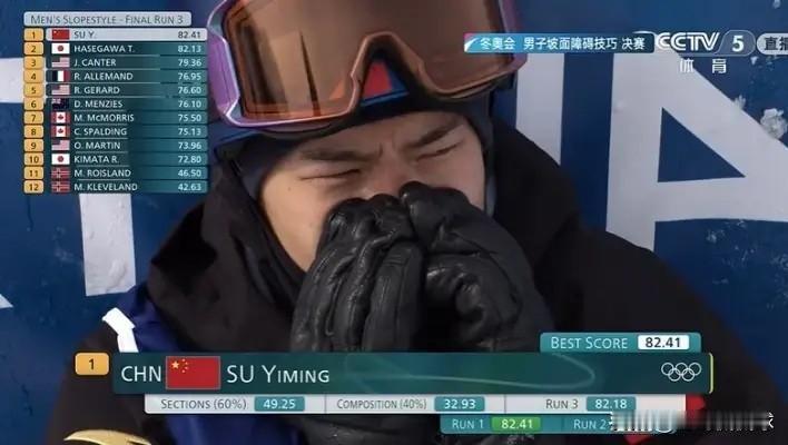 在今天进行的米兰冬奥会单板滑雪男子坡面障碍技巧决赛中,发生了特别感人的一幕。当时中国名将苏翊鸣在第三滑中的表现堪称完美,他得到了82.18的高分。值得一提的是,在完成动作以后,苏翊鸣情难自禁竟然流下了热泪,场面看起来特别的感人。