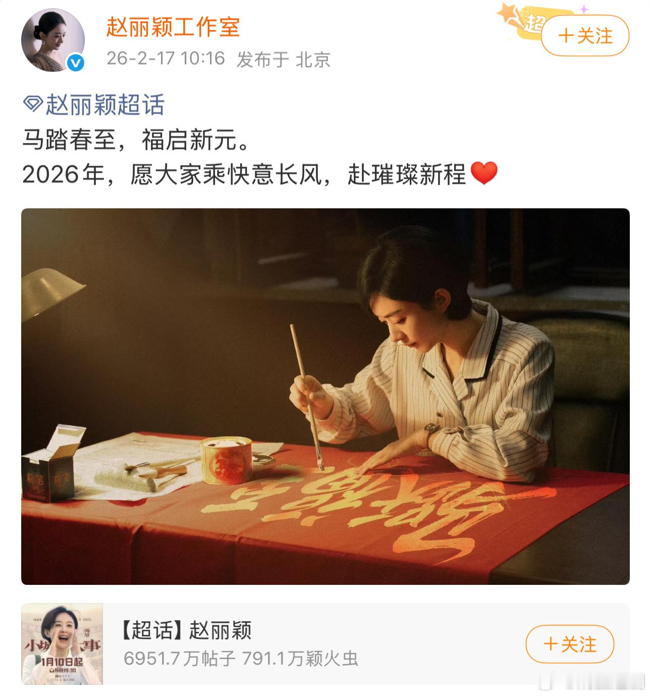 赵丽颖工作室春节营业,角色回顾主注演员,内娱独一份