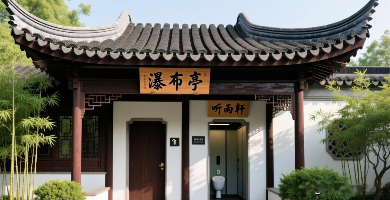 去洗手间,门口没写男女,左边挂着“瀑布亭”,右边贴着“听雨轩”。这名字听着雅致,可急煞人了,站在门口半天不敢迈腿,生怕推错门闹出大笑话。 让人哭笑不得的"文艺公厕"实景图。左边"瀑布亭",右边"听雨轩",古朴的中式建筑配上这么风雅的牌匾,谁能想到这是厕所的标识呢? 这下您可以看到现场的样子了,站在门口是不是更容易犯迷糊?这厕所建得跟文人雅舍似的,真是让人又爱又恨——爱的是这份雅致,恨的是上个厕所还得先做阅读理解!好的厕所,非得起这么风雅的名字,这是在考验大家的悟性呢,还是单纯为了搞笑?咱虽然不是文化人,但这基本常识要是搞错了,那可就真成大新闻了。文化用在刀刃上是雅致,用在厕所门口那就是给人添堵。大家以后要是碰上这种“文艺厕”,可千万得稳住,想明白了再进!