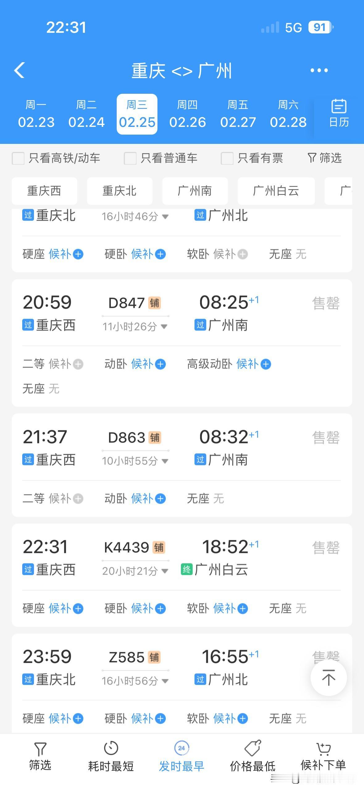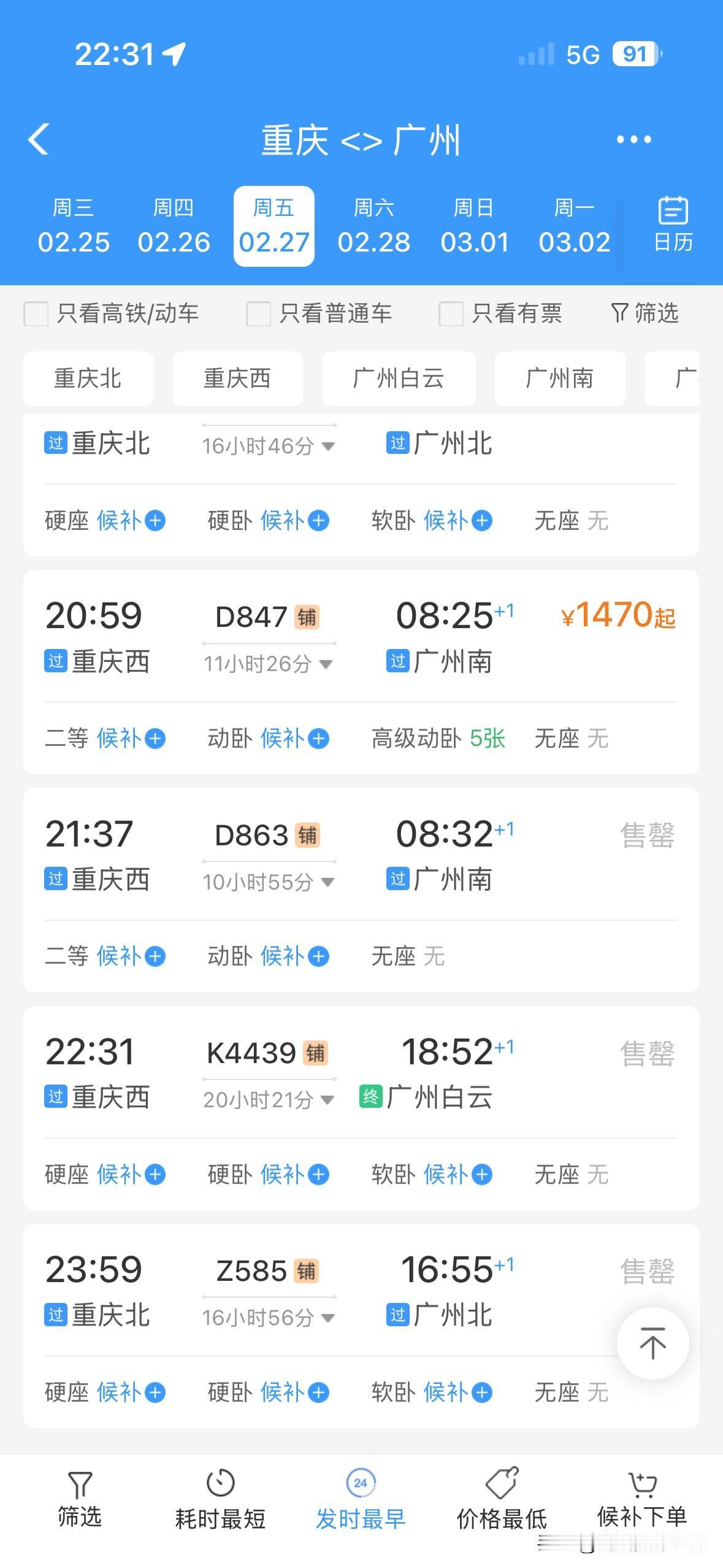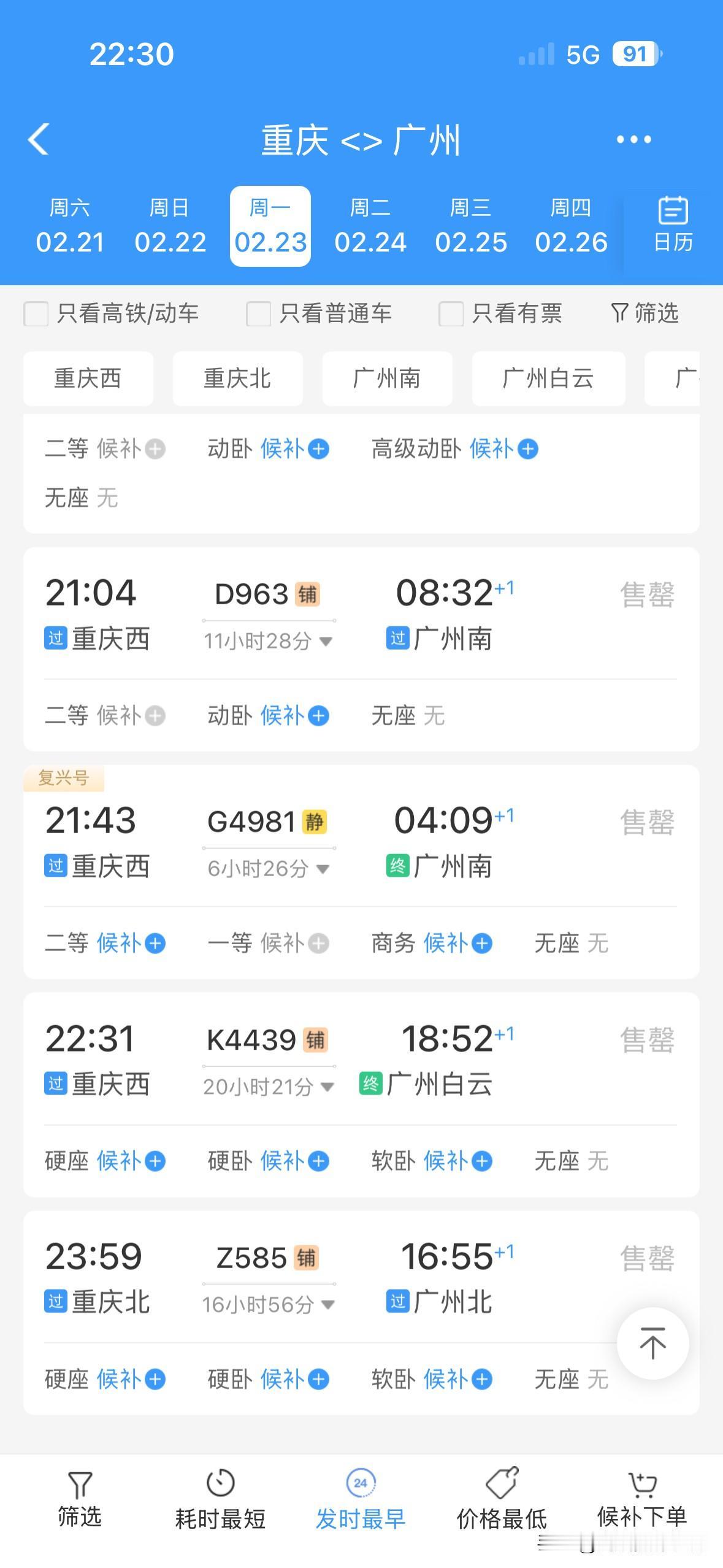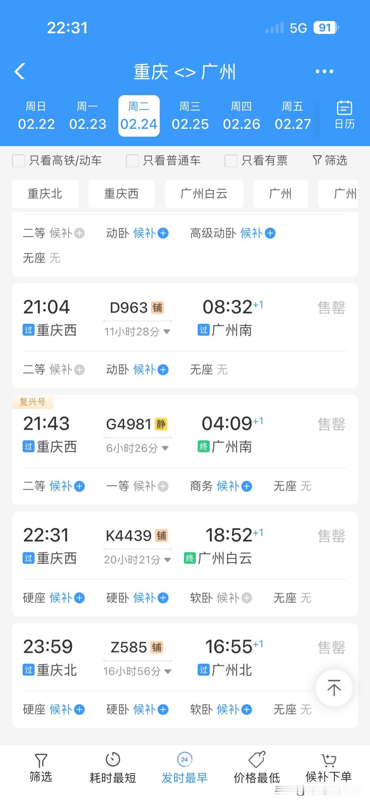 太吓人了!2月21日到3月1日,重庆到广州的火车票,几乎全部售罄,偶尔有零星的站票或者商务座……真没想到,大年初五到元宵节之前,重庆到广州,如此火爆! 可是,春节前,2026年春运,广东省珠三角没有出现史诗级超级大堵车,广东回乡的火车票也比较好买! 但是,2026年春运,返程的火车票,真的是太火爆了啊!万万没想到啊! 看来,春节后,大家还是很想去广东干活赚钱的啊!